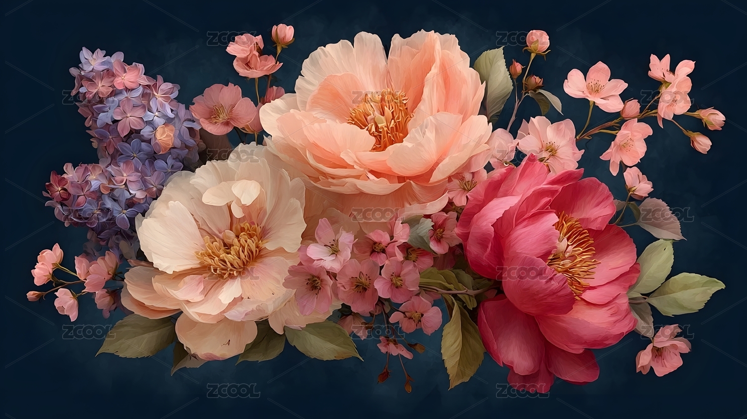 花卉艺术插画深色背景