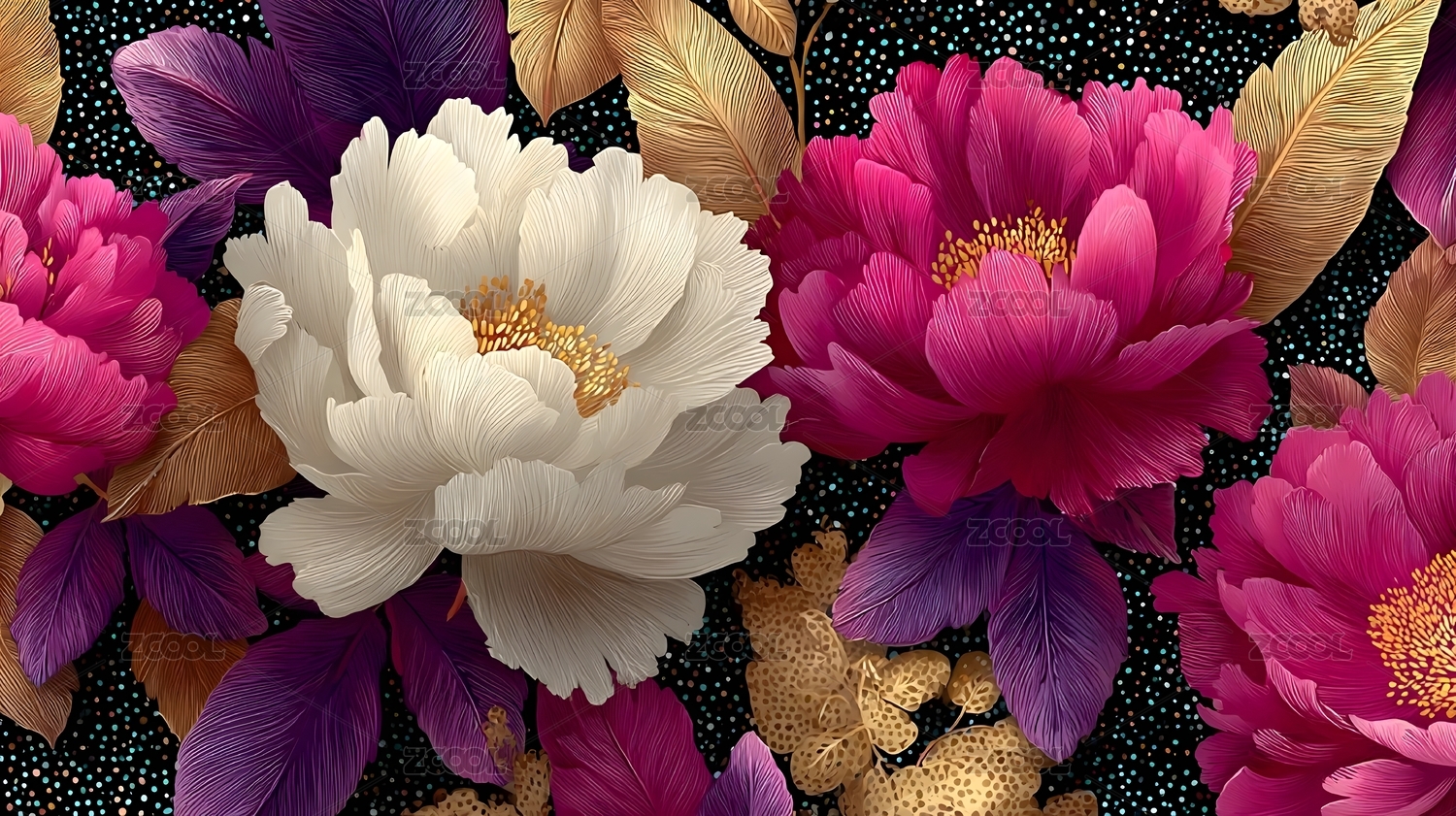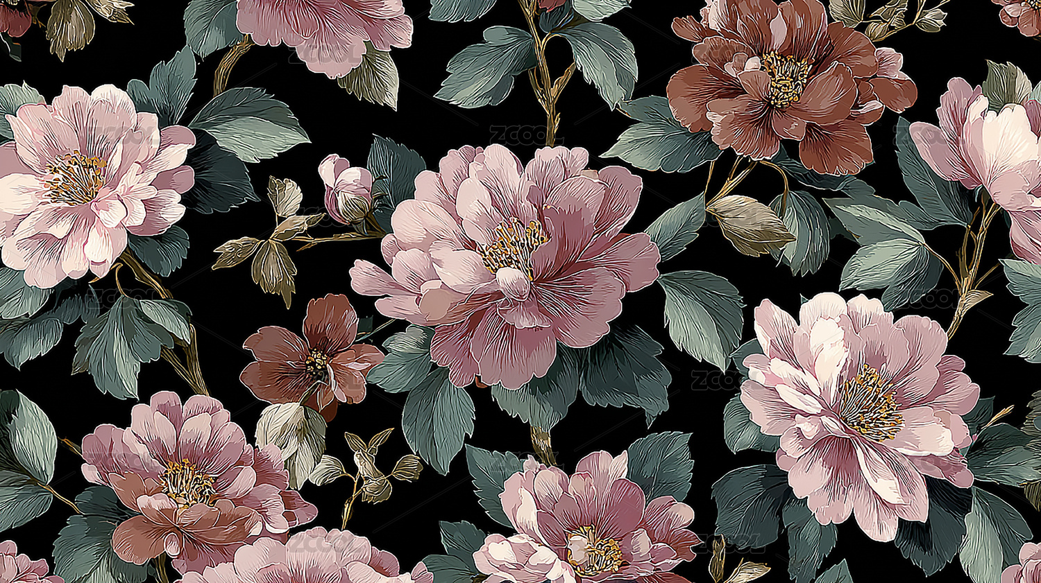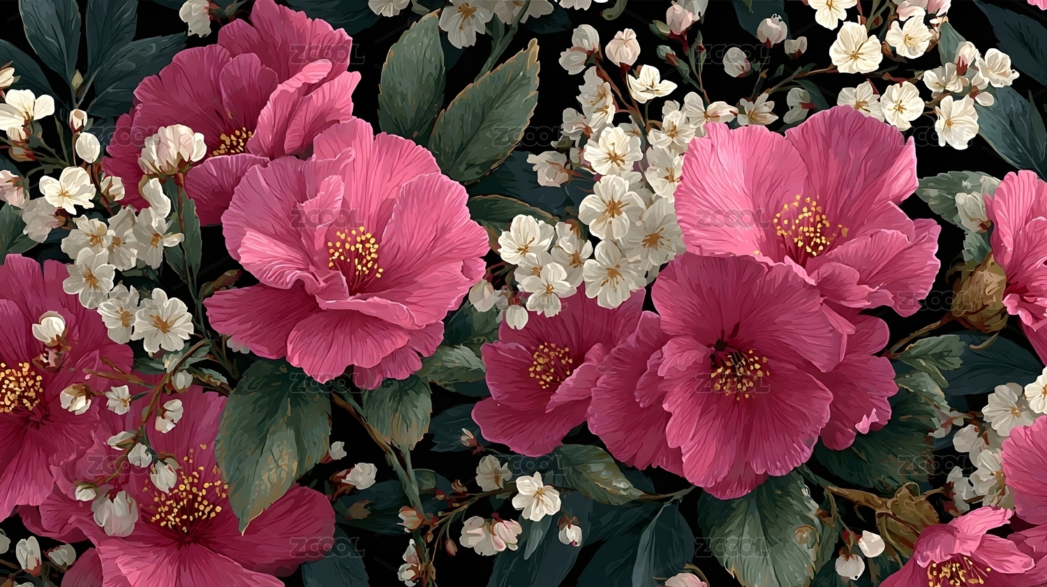 花朵,叶子,绿色,图案,背景,植物,枝叶,花瓣,花蕊,装饰