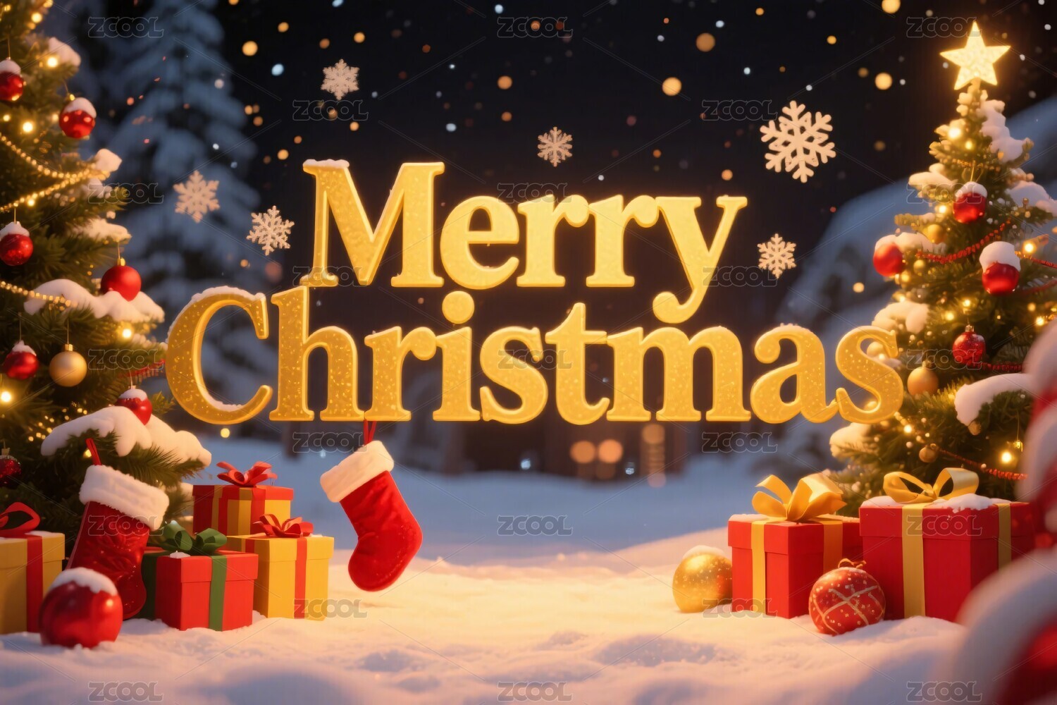圣诞树雪景装饰场景