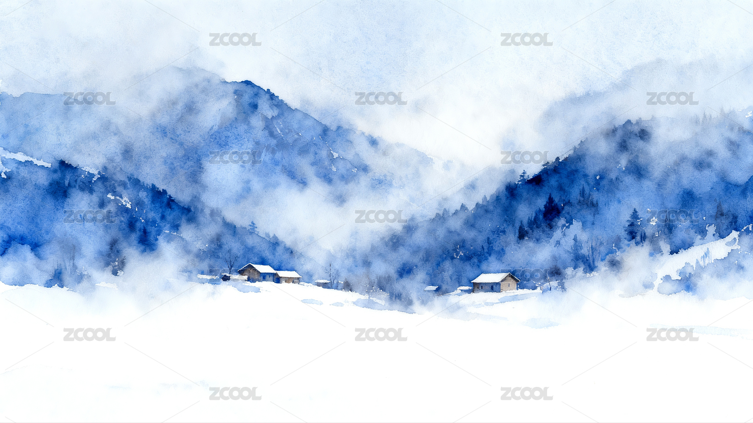 背景,装饰,水彩,晕染,艺术,白色,自然,蓝色,冬季,雪地