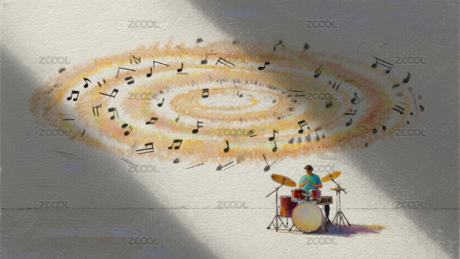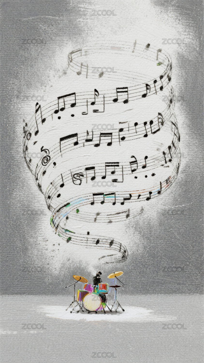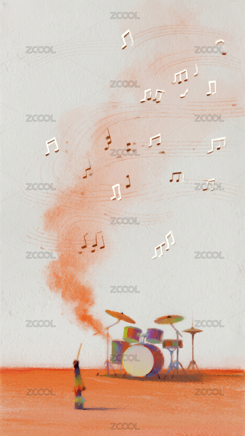 清新明亮彩色架子鼓爵士鼓手绘插画绘画