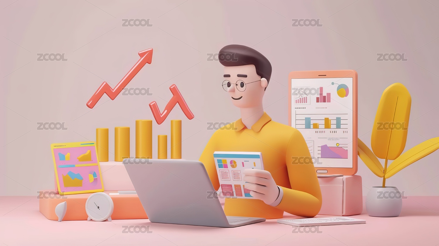 办公,数据分析,职场,人物,插画,电脑,图表,报表,数据,学习