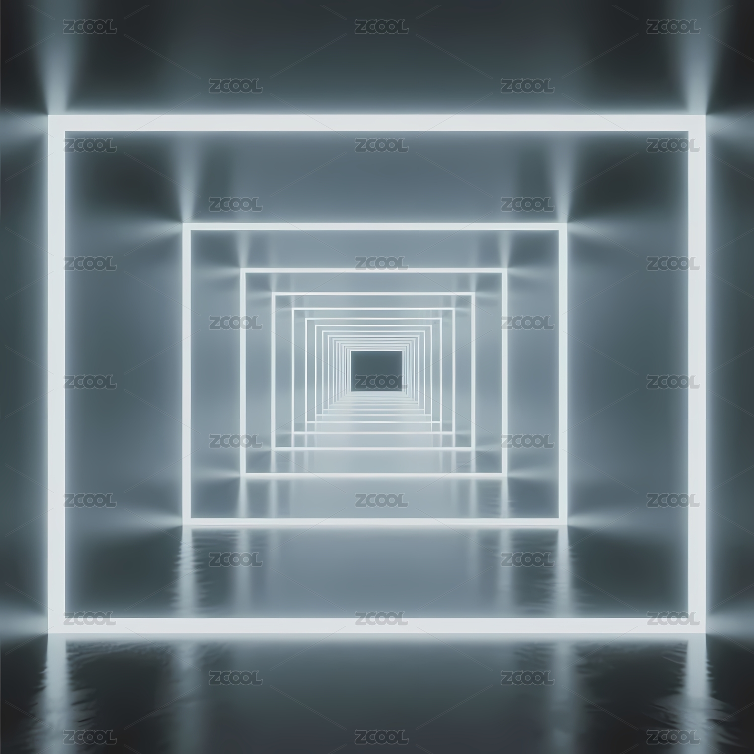 无限延伸的光亮方形隧道