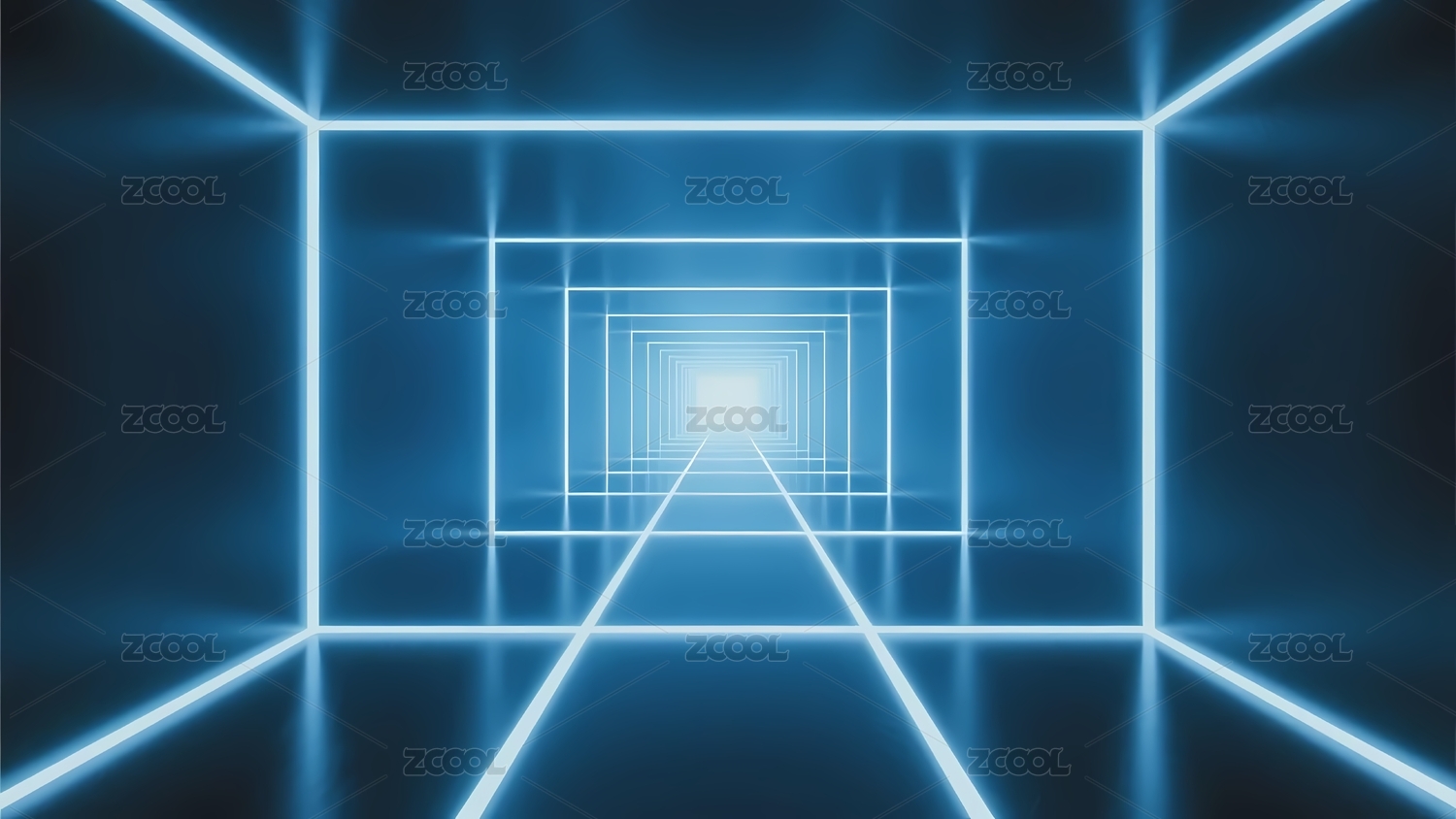 蓝色光效方形隧道