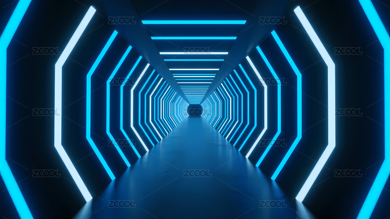 蓝白霓虹几何隧道走廊