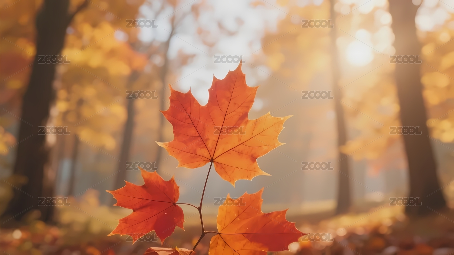秋日森林中的橙色枫叶