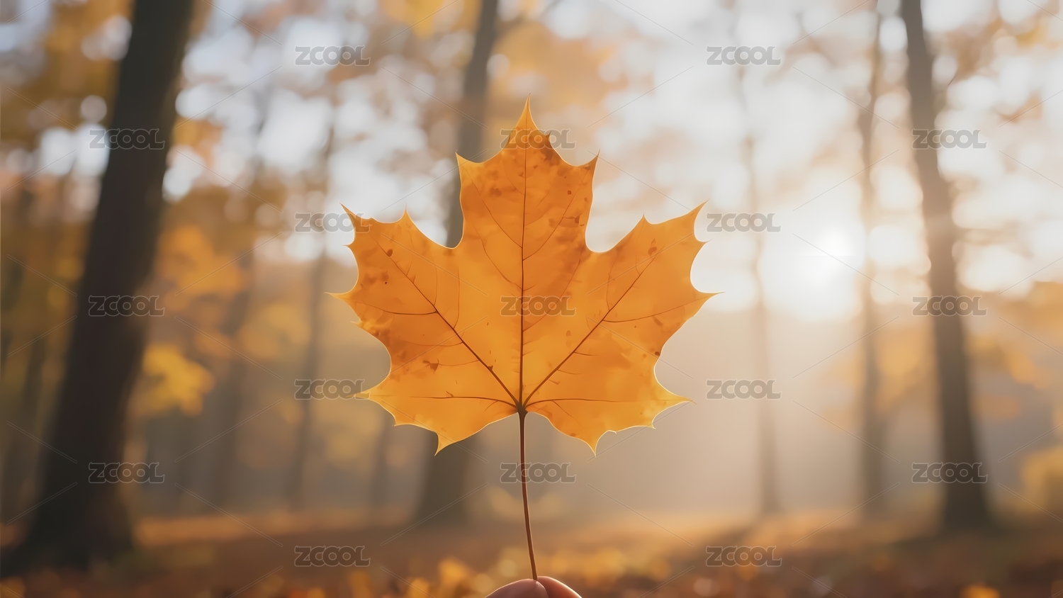 秋日森林中手持金黄枫叶