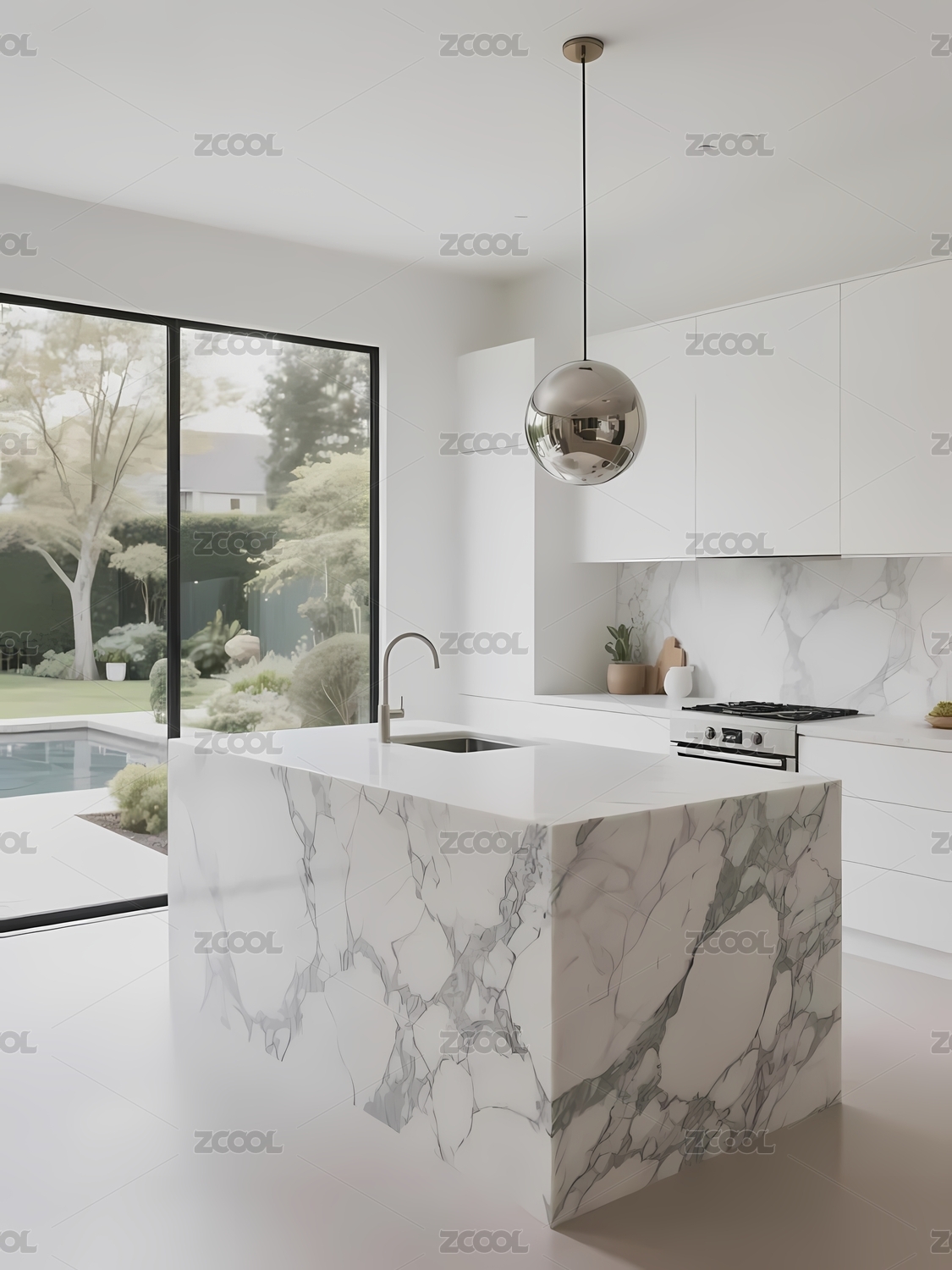 现代,厨房,橱柜,岛台,白色,简约,窗户,室内,设计,整洁
