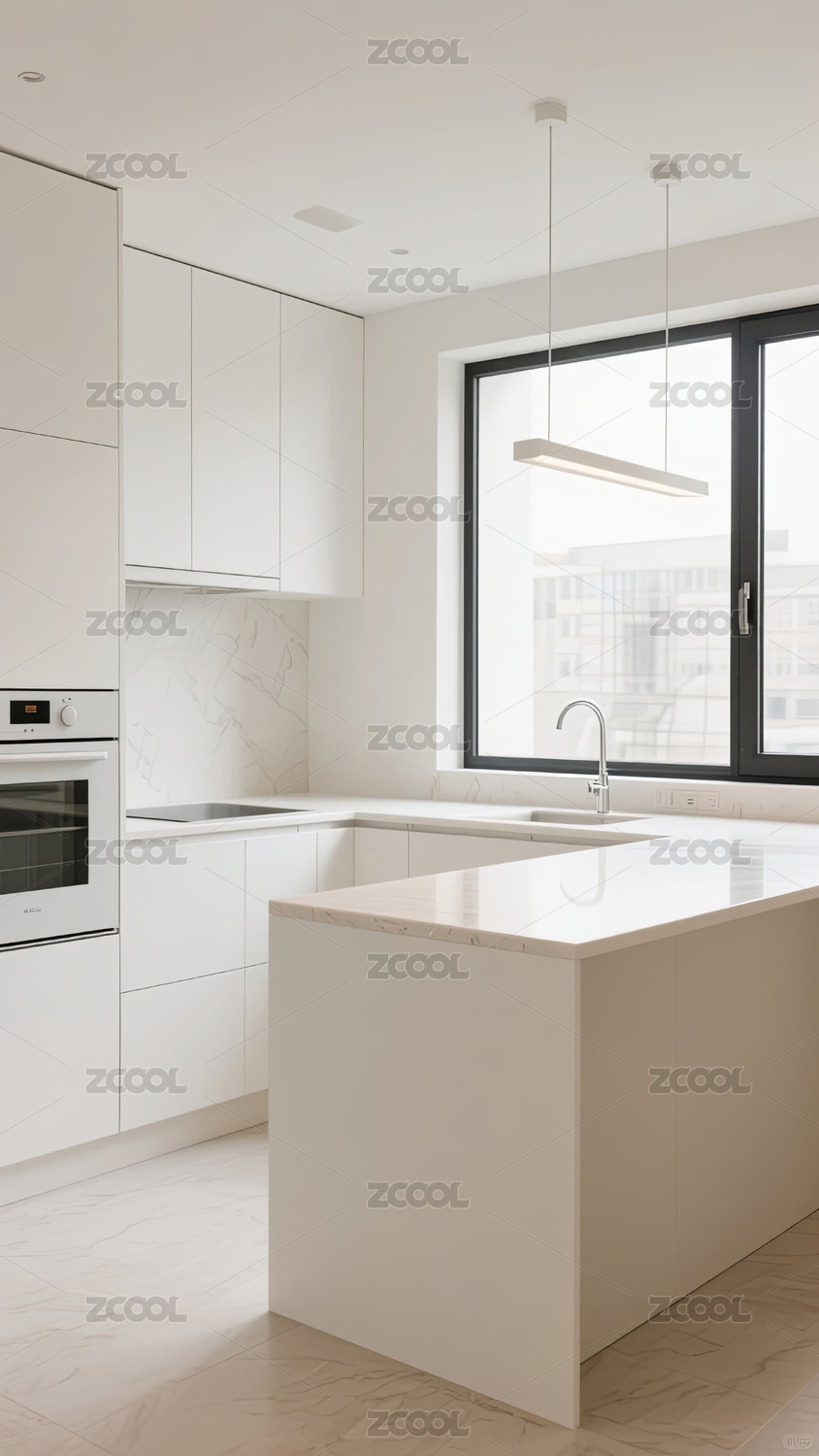 现代,厨房,橱柜,岛台,白色,简约,窗户,室内,设计,整洁