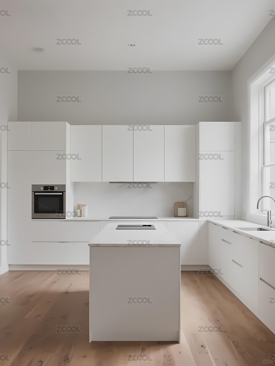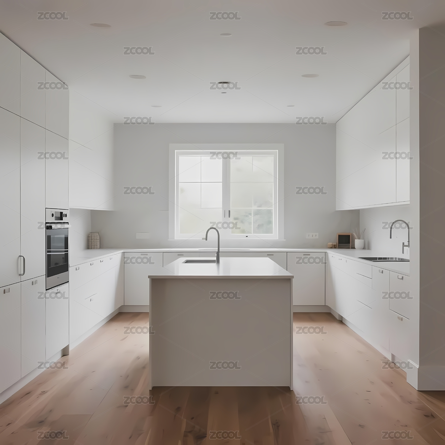 厨房,现代,白色,橱柜,水槽,窗户,室内,明亮,整洁,设计