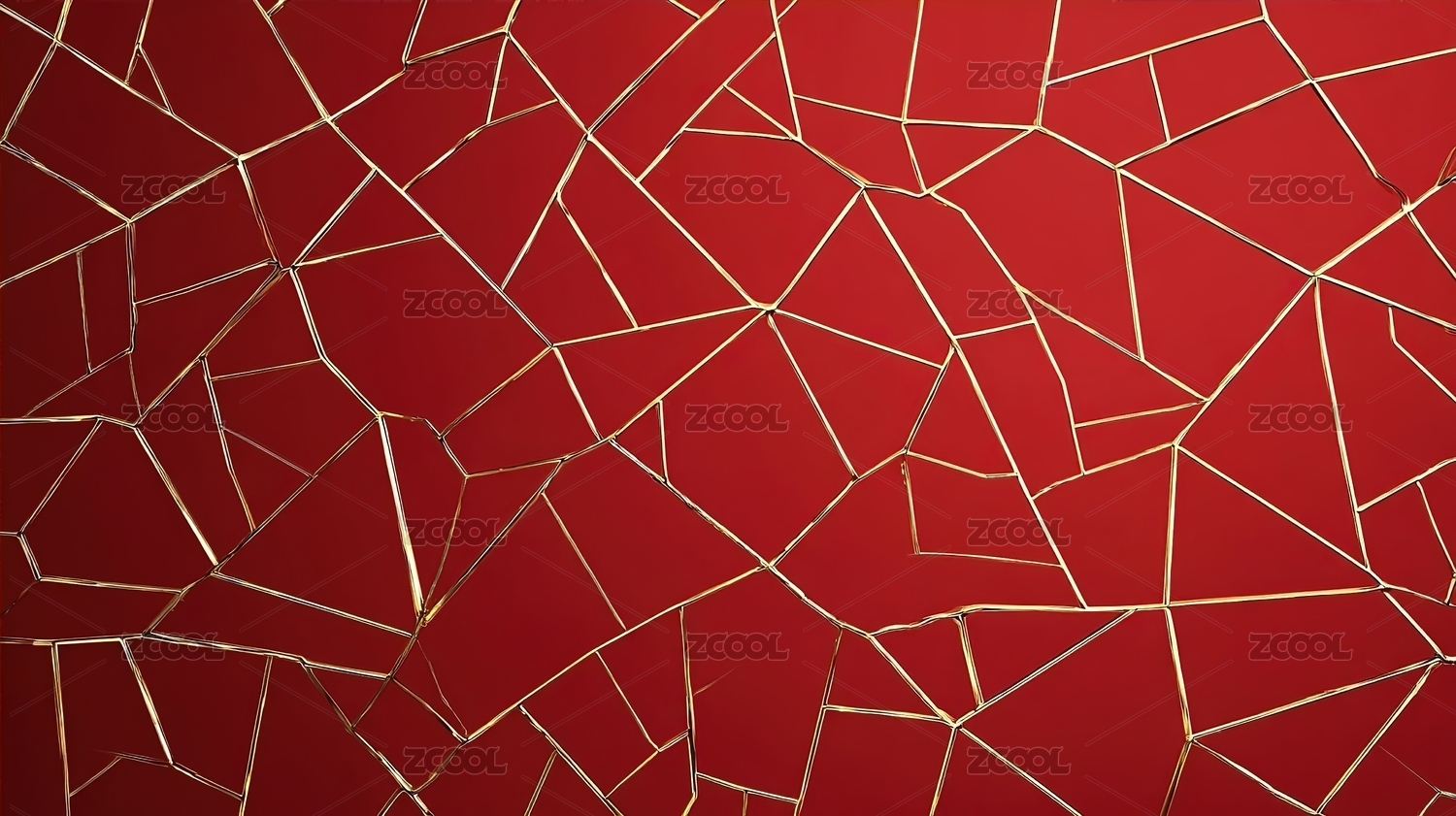 红色背景金线拼接抽象几何图案