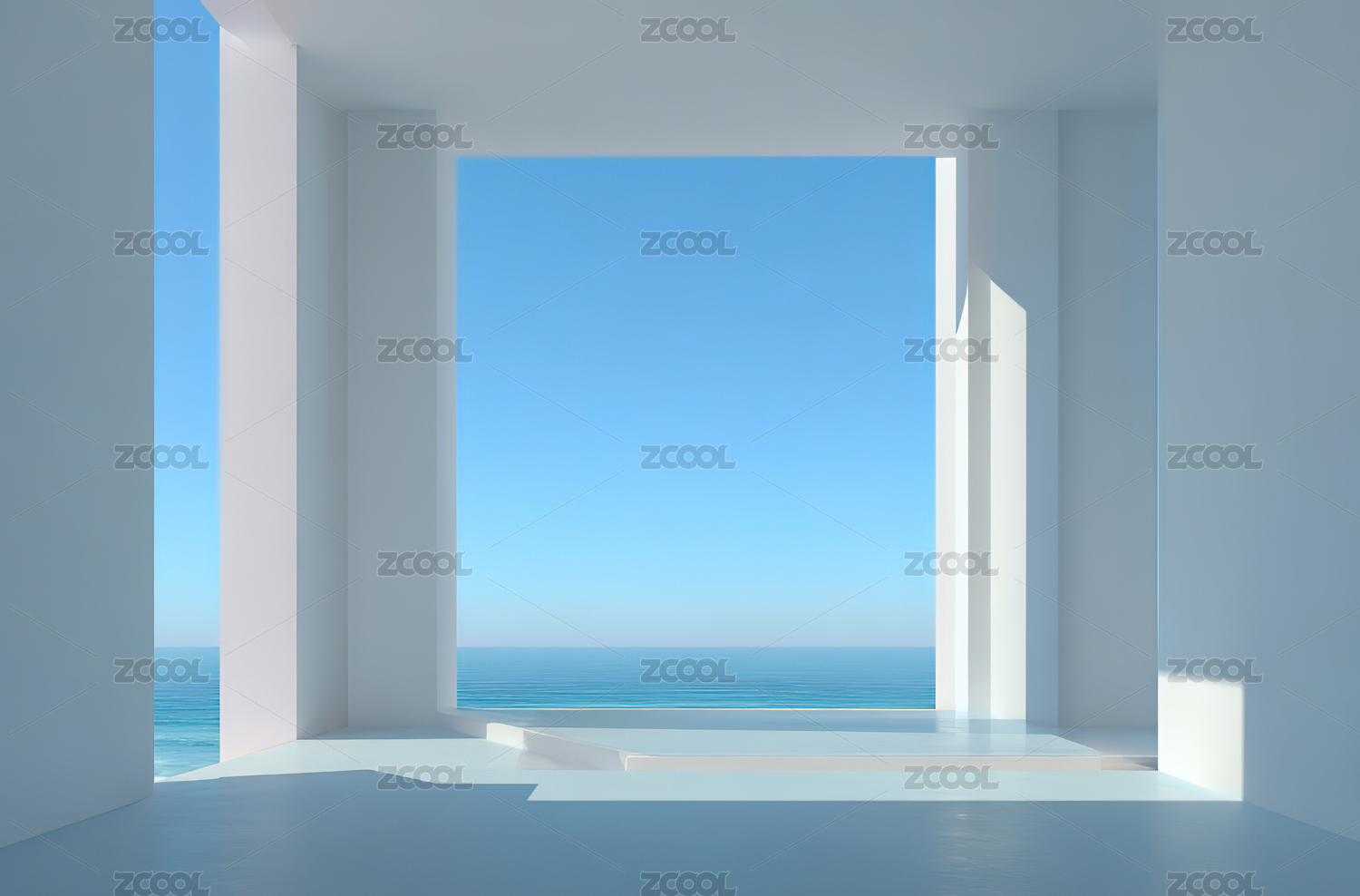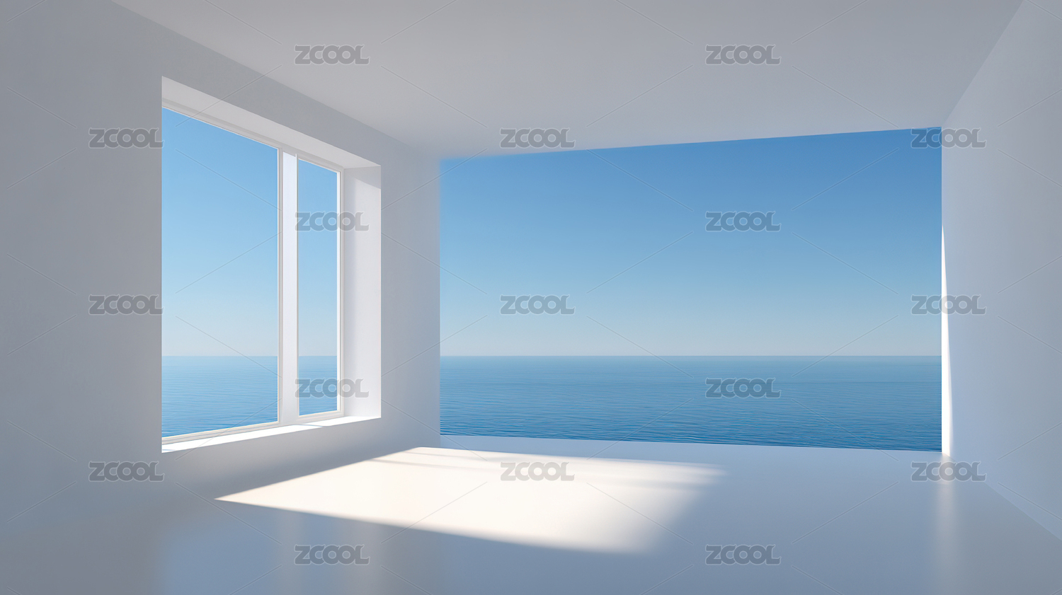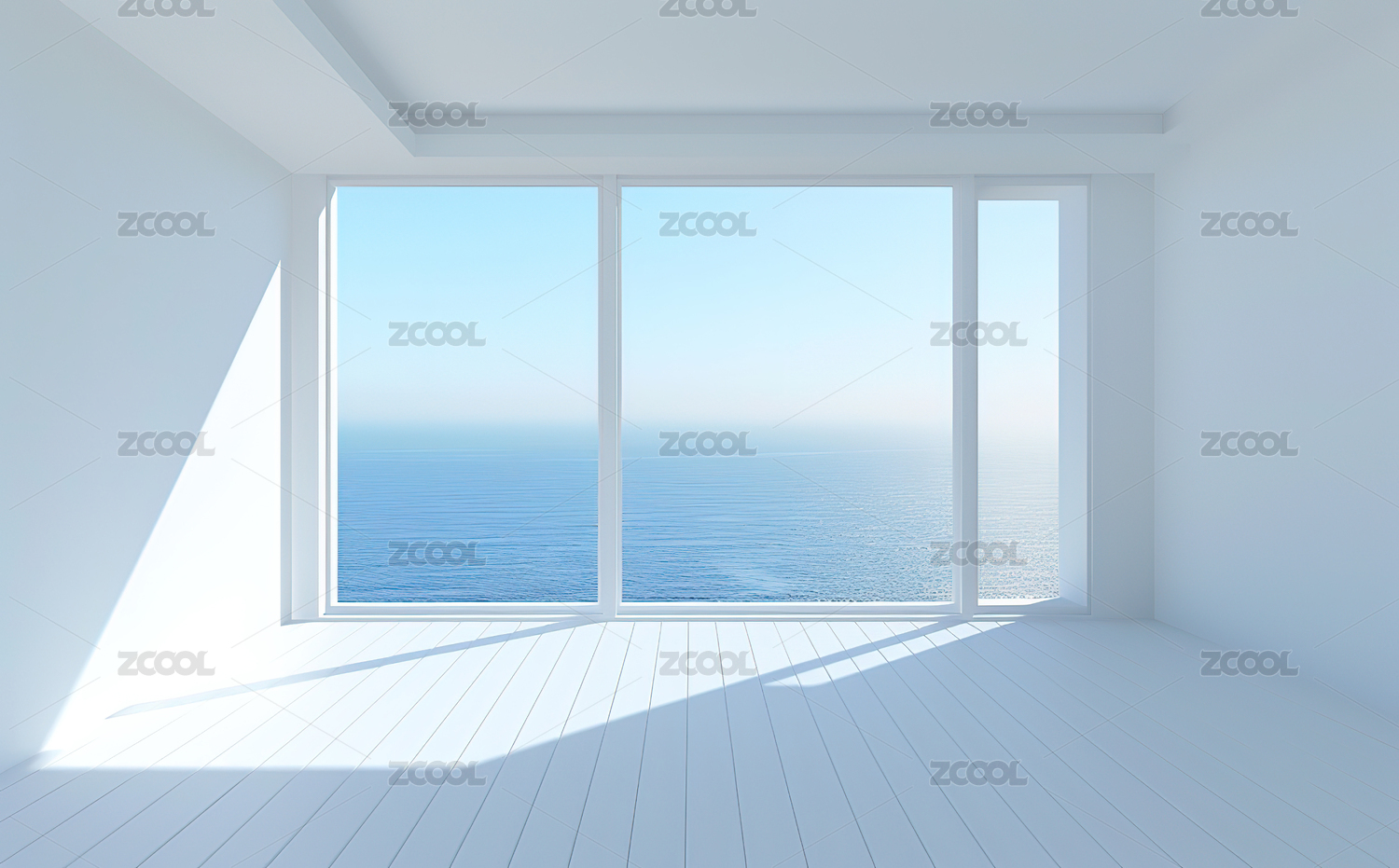 室内,现代,窗户,海景,光线,白色,空旷,建筑,海洋,自然