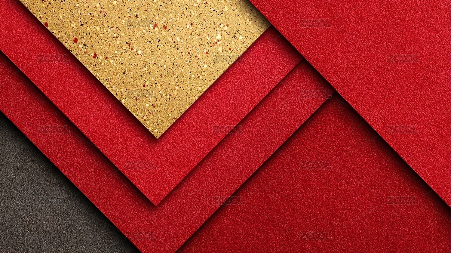 红色纸张与金色纸张的抽象组合