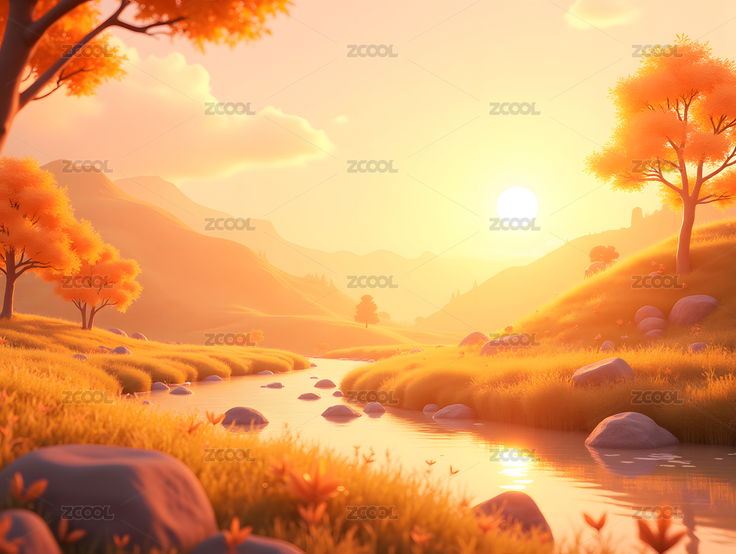 3D秋天自然户外风景插画背景壁纸