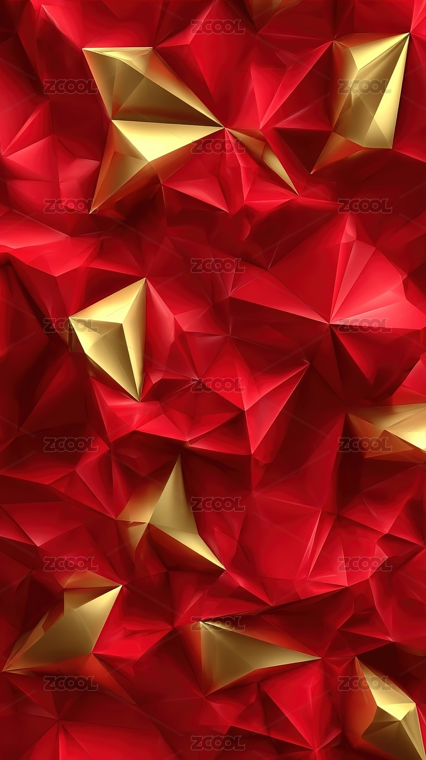 红色,抽象,几何,装饰,纹理,立体,棱角,结构,金边,多面体