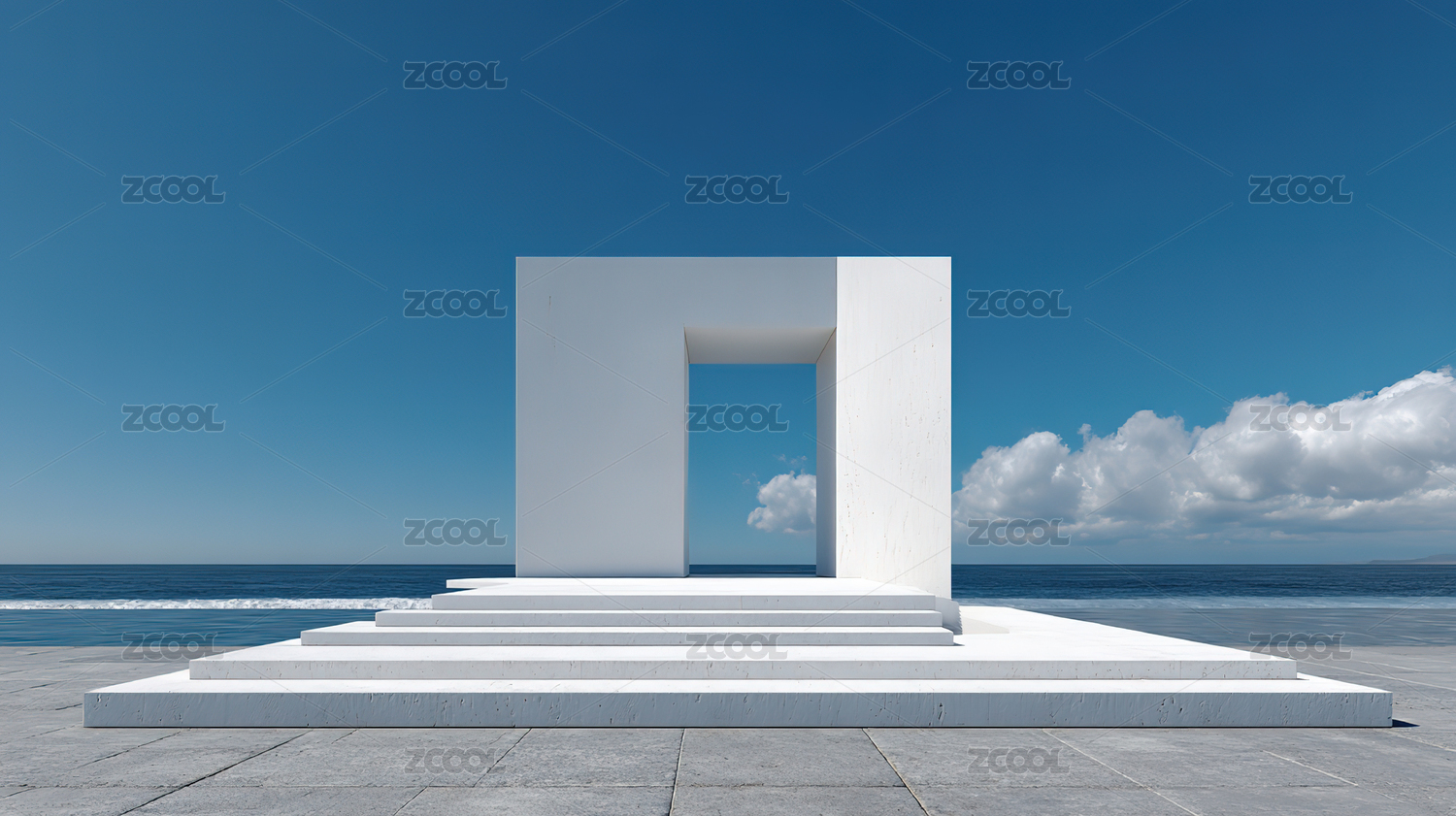 现代,建筑,设计,空间,白色,简约,光影,几何,海边,框架