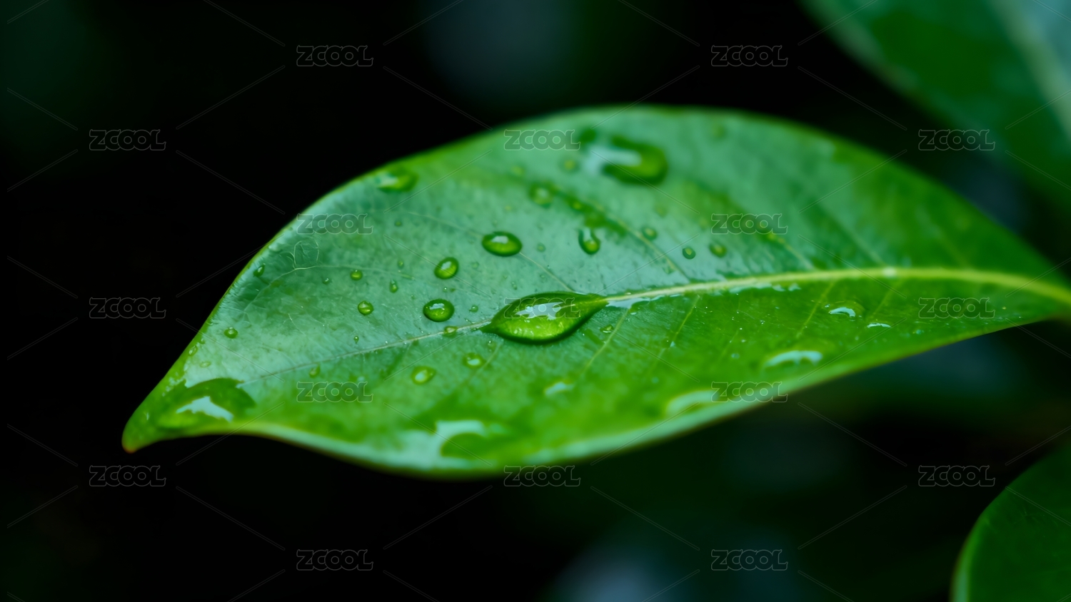 绿叶水珠清新自然特写场景