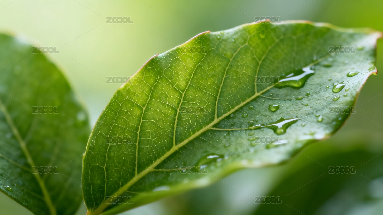 带水滴的绿叶,清新自然