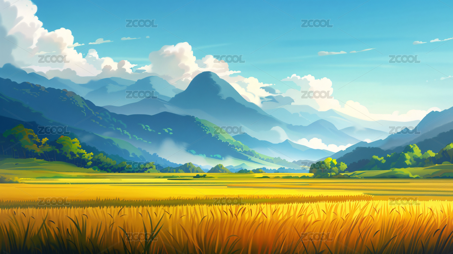 立秋节气秋天农业收获农田粮食成熟秋收插画