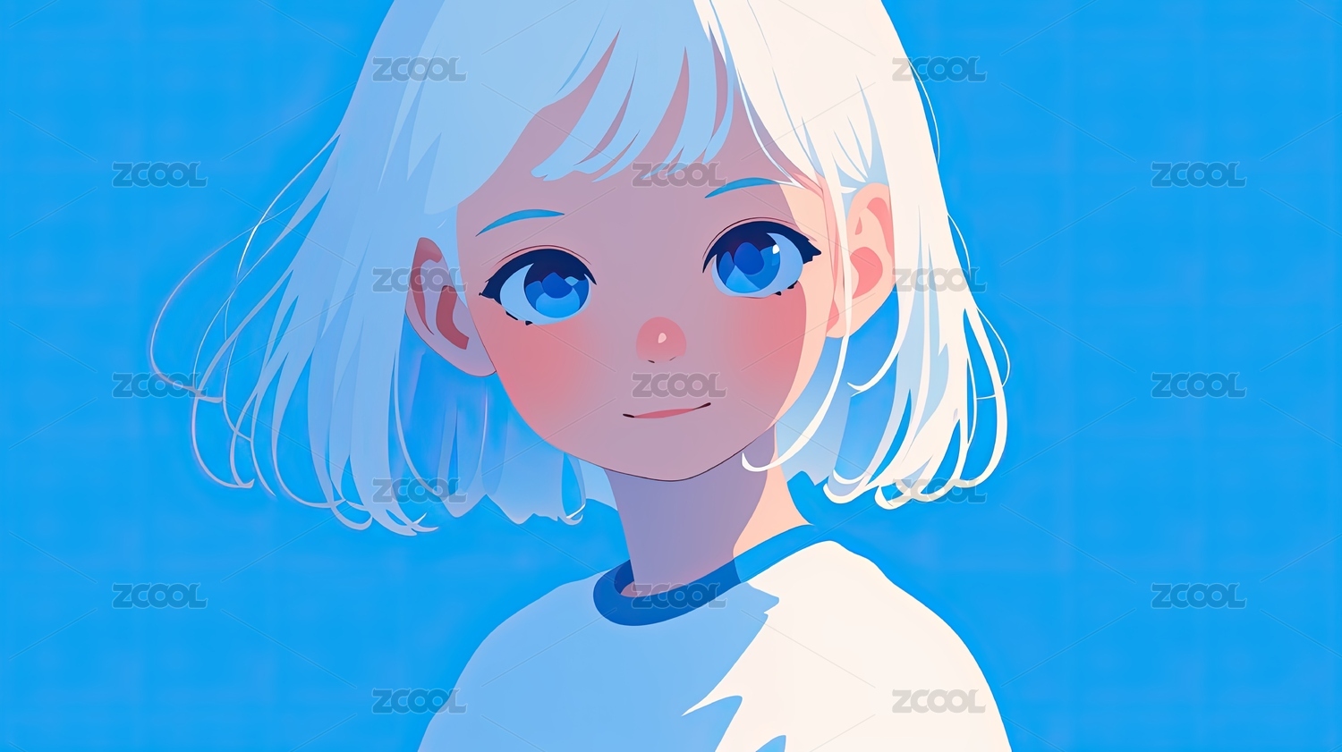 插画,背景,艺术,粉色,动漫,少女,蓝色,梦幻,风格,侧脸