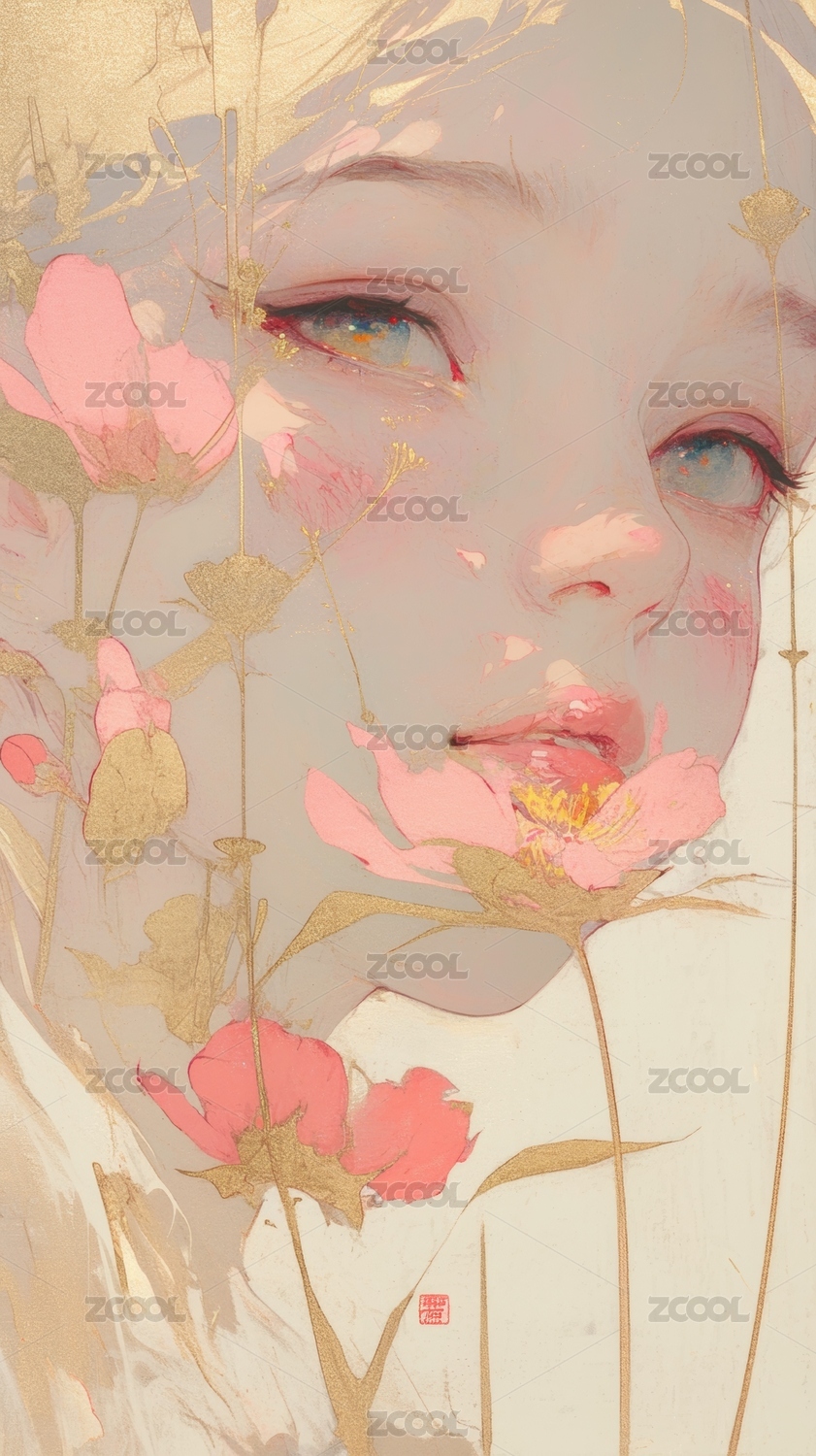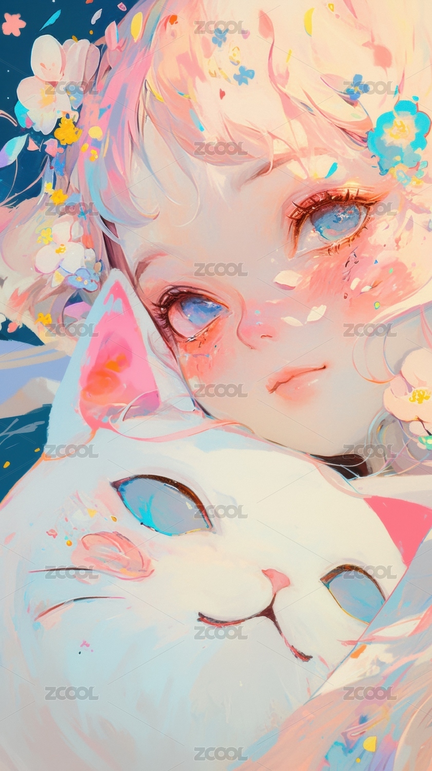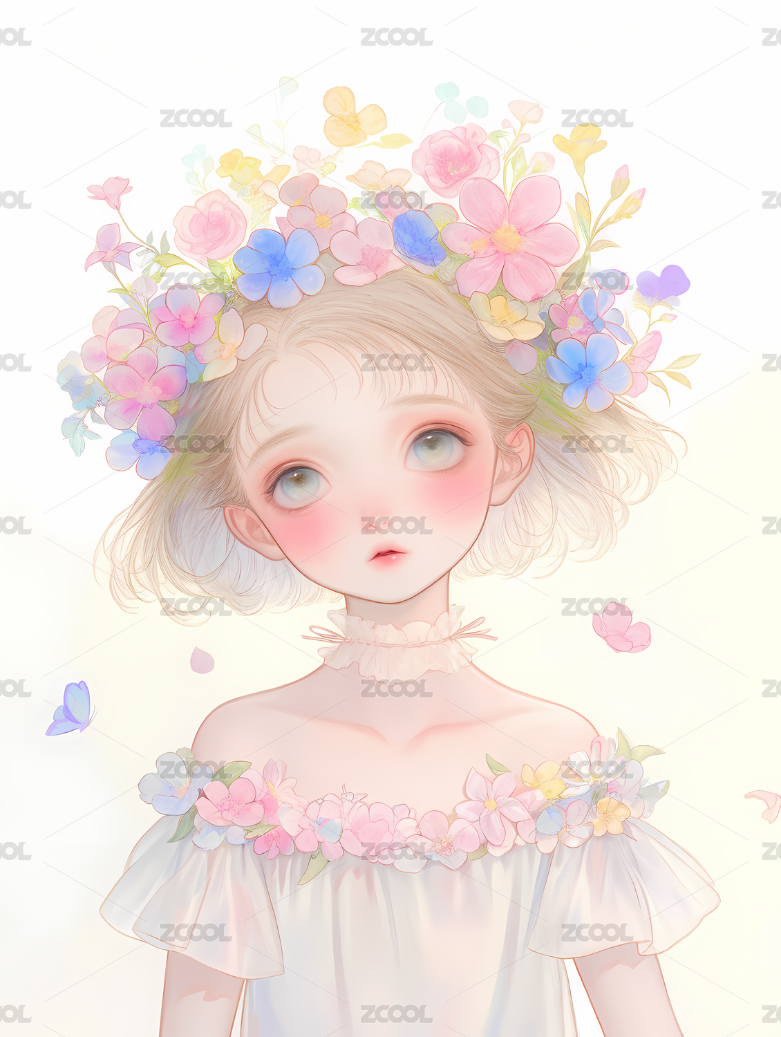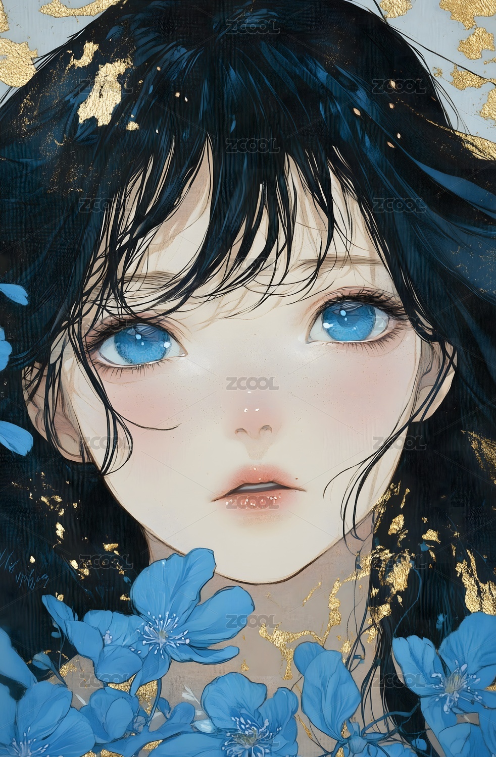 自然,艺术,色彩,梦幻,蓝色,背景,插画,温馨,白色,花朵