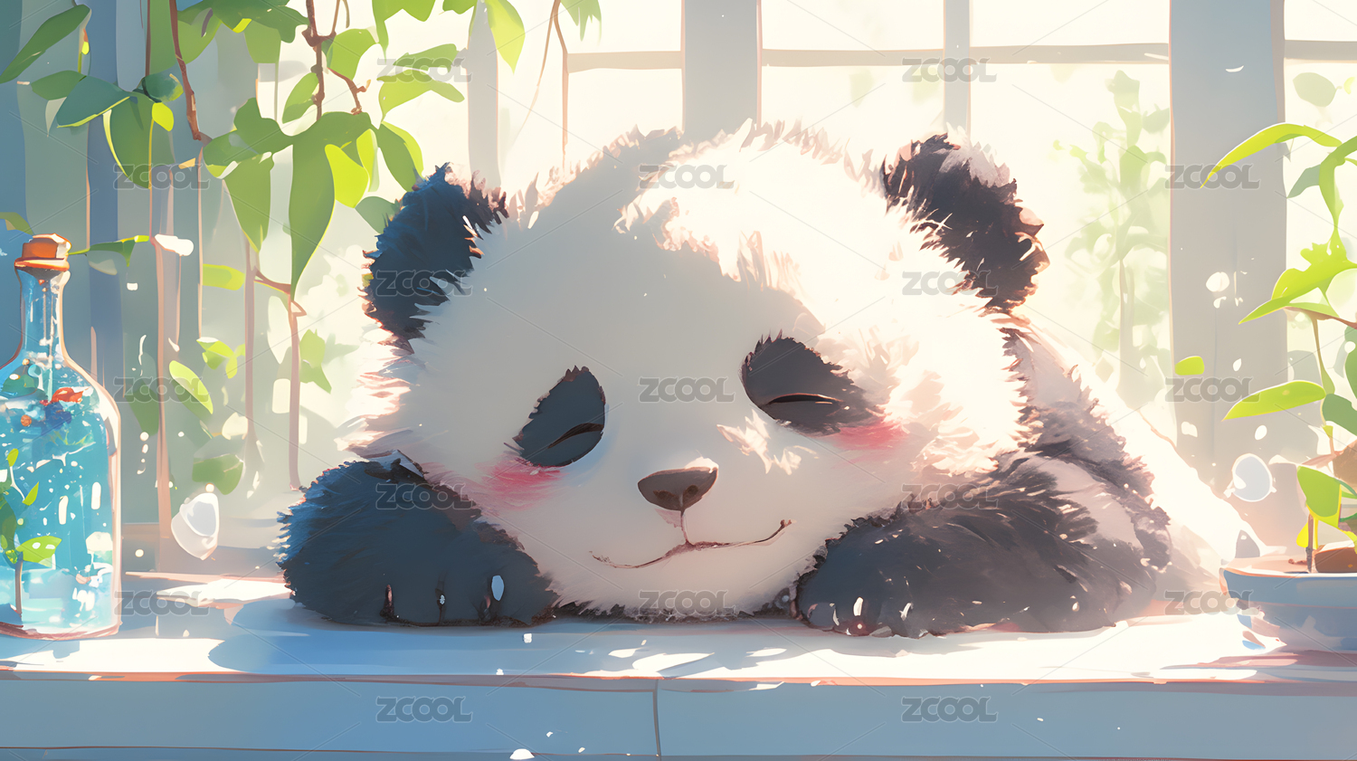 阳光,自然,卡通,插画,可爱,背景,艺术,表情,温暖,熊猫