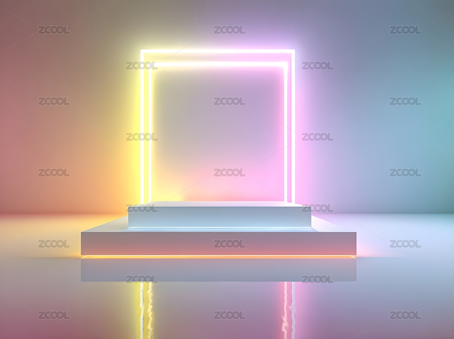 霓虹光影的未来空间 赛博朋克风的几何世界