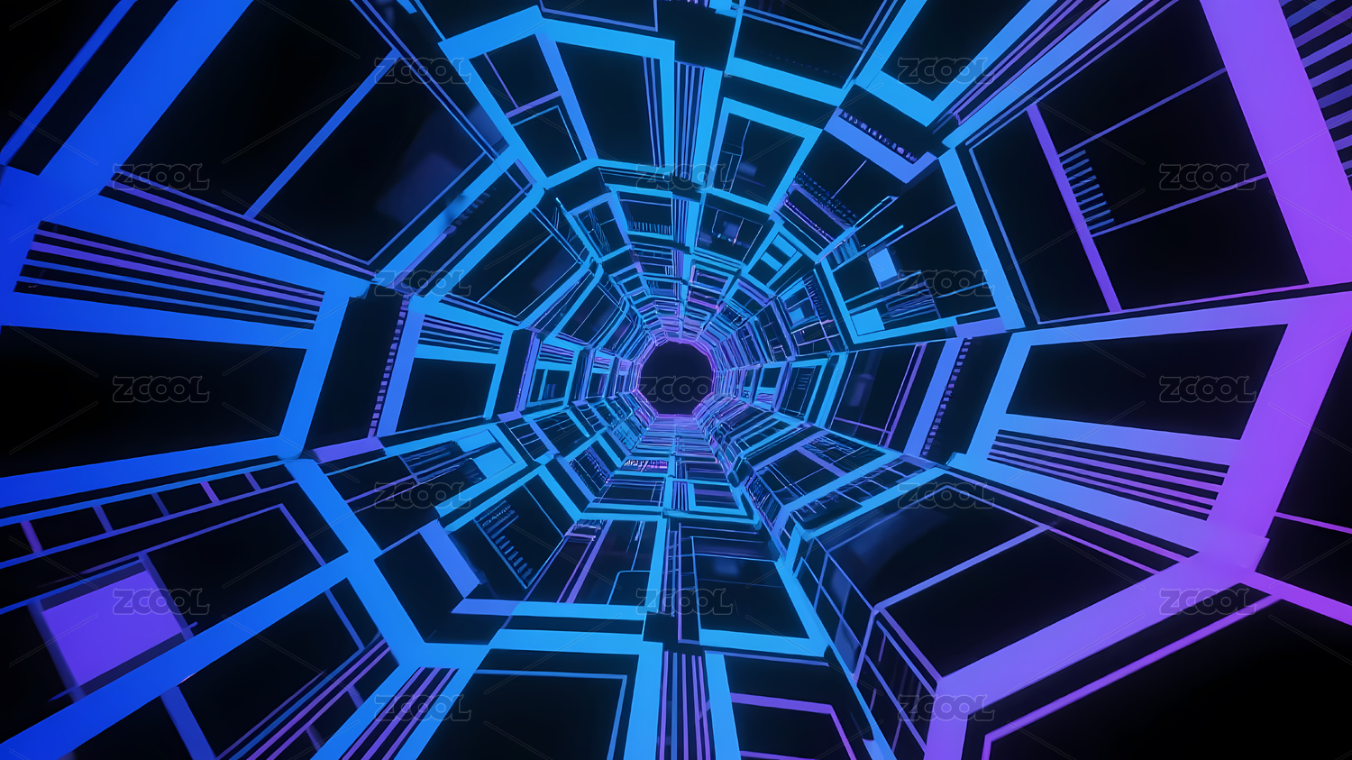 六边形隧道蓝色光未来场景