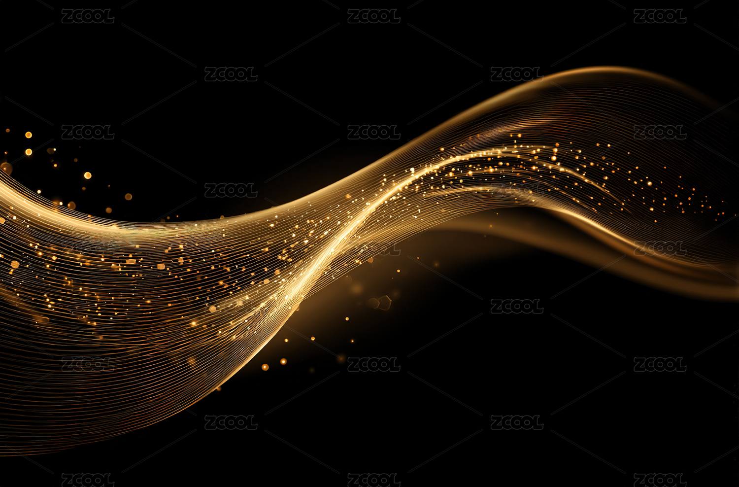 黑底金色粒子波纹曲线流动科技背景
