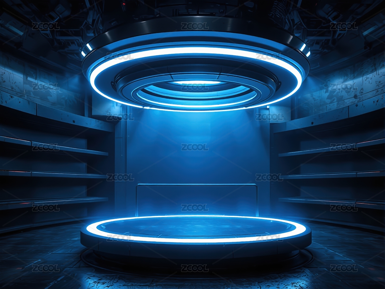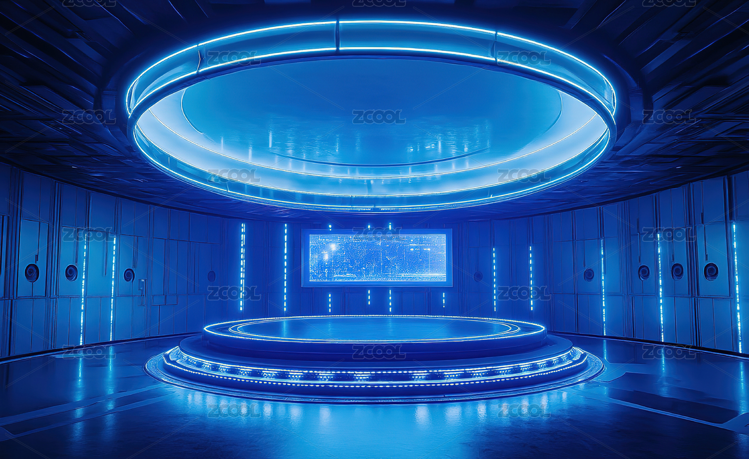 未来科技空间的蓝色光环