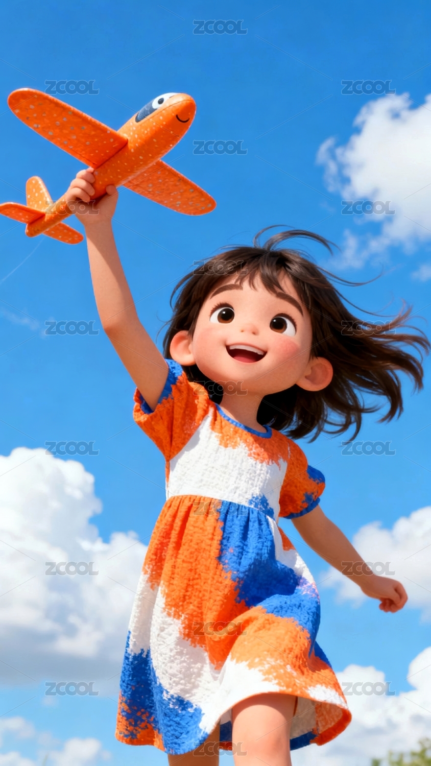主视觉,商业,壁纸,天空,男孩,橙色,玩具,飞机,玩耍,白云
