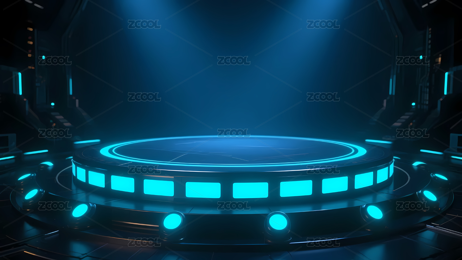 蓝色霓虹圆形平台