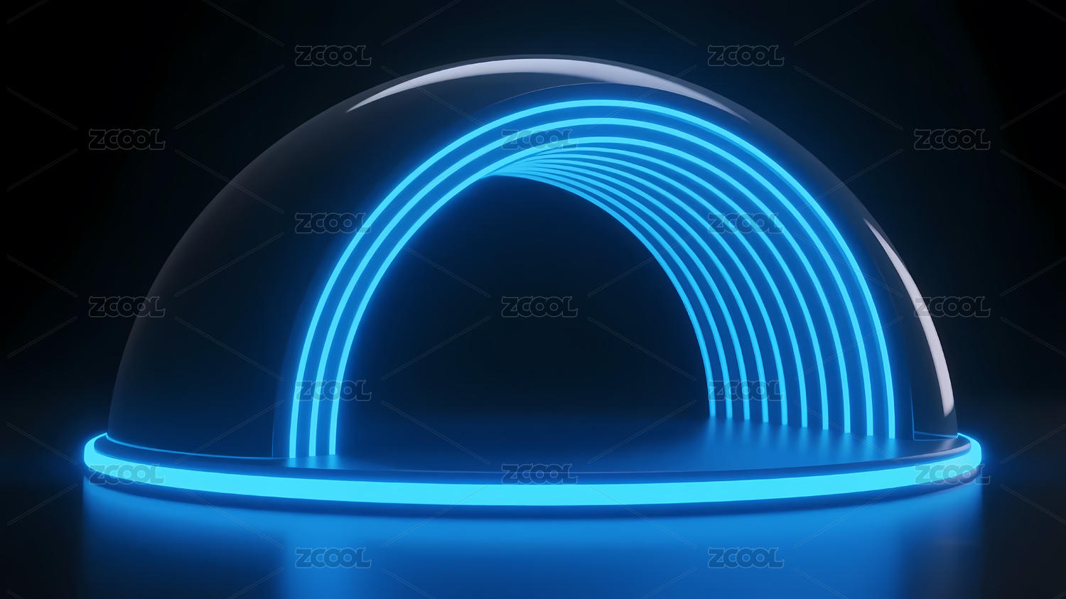 蓝色发光弧形结构设计
