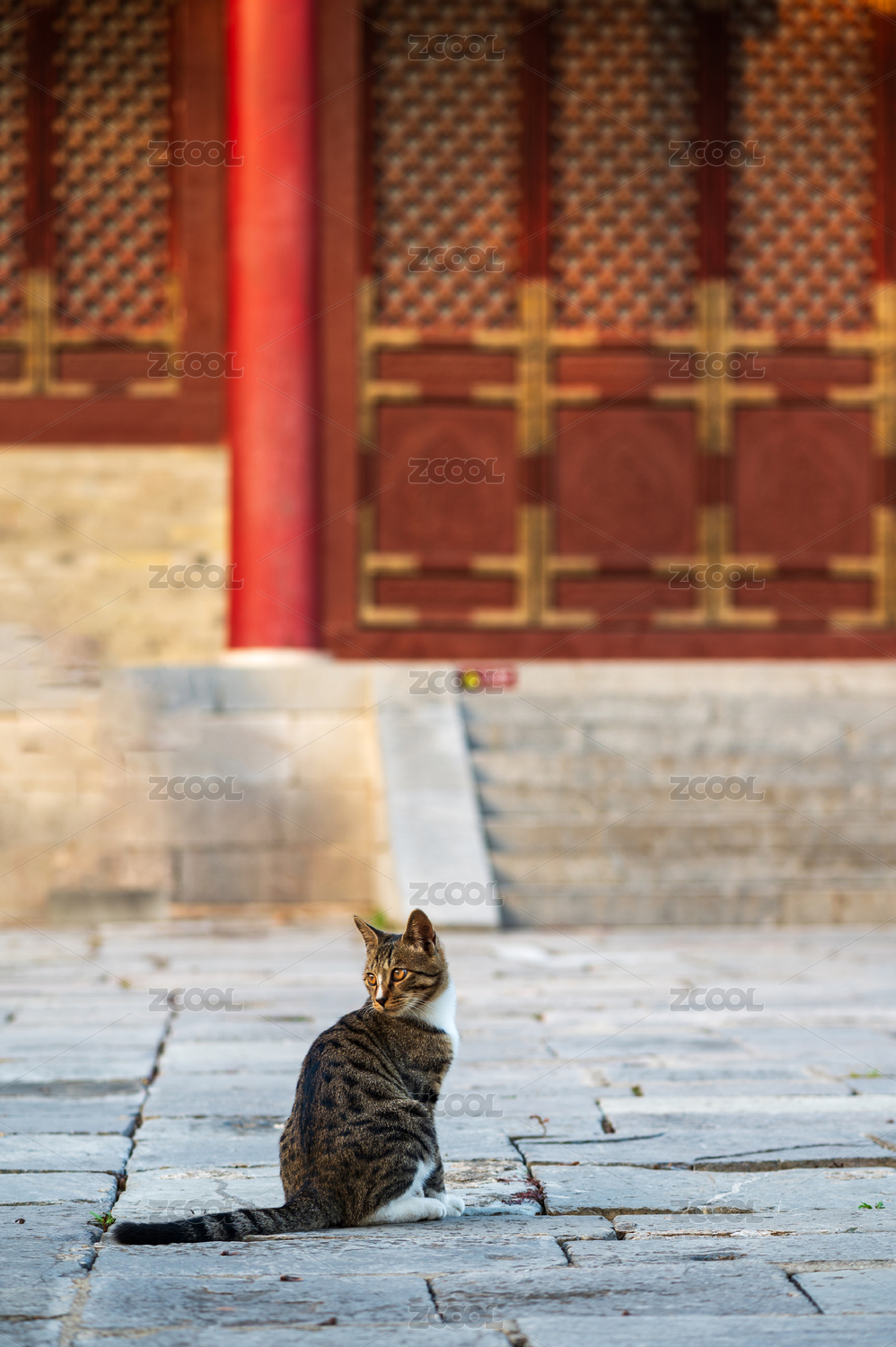 猫咪,故宫,屋顶,古建筑,花斑猫,灰白猫,树木,红墙,瓦片,猫