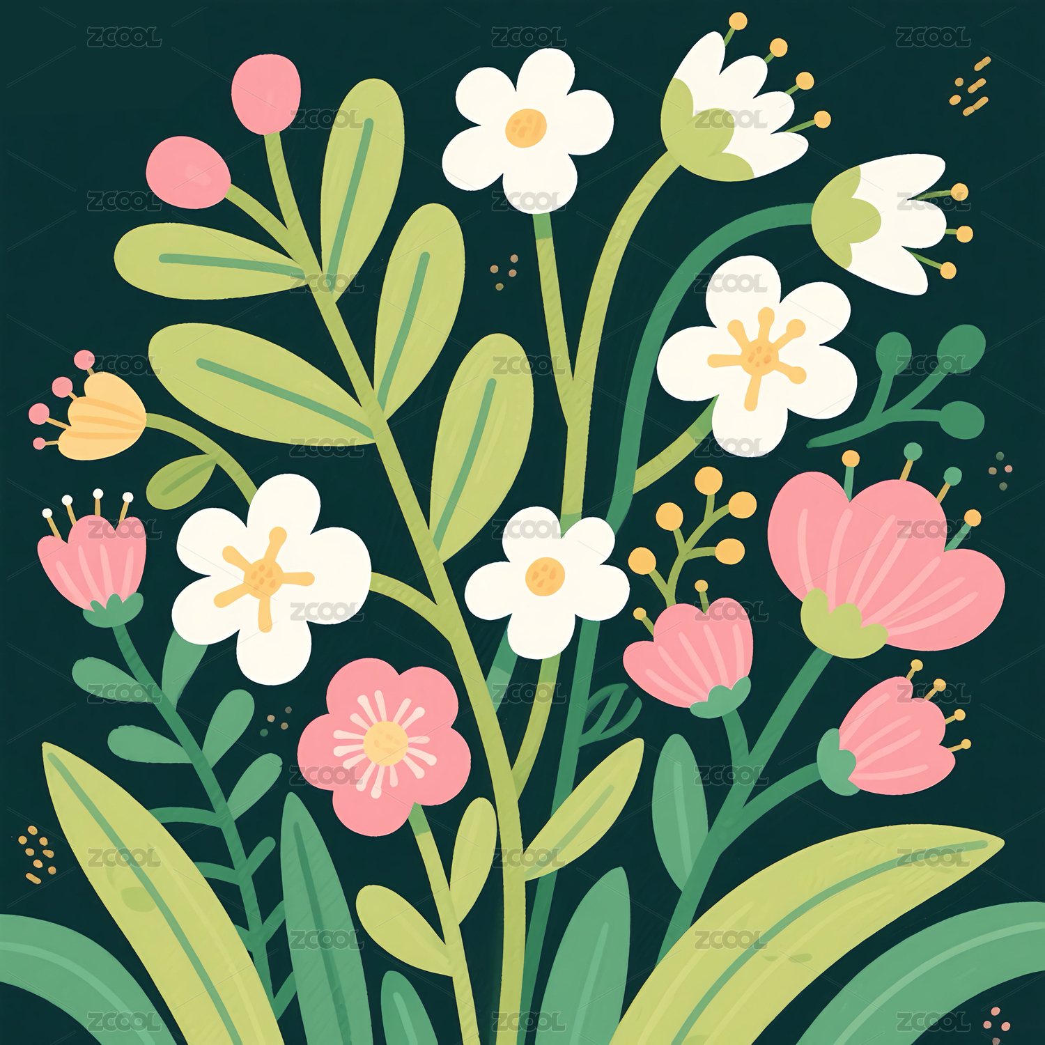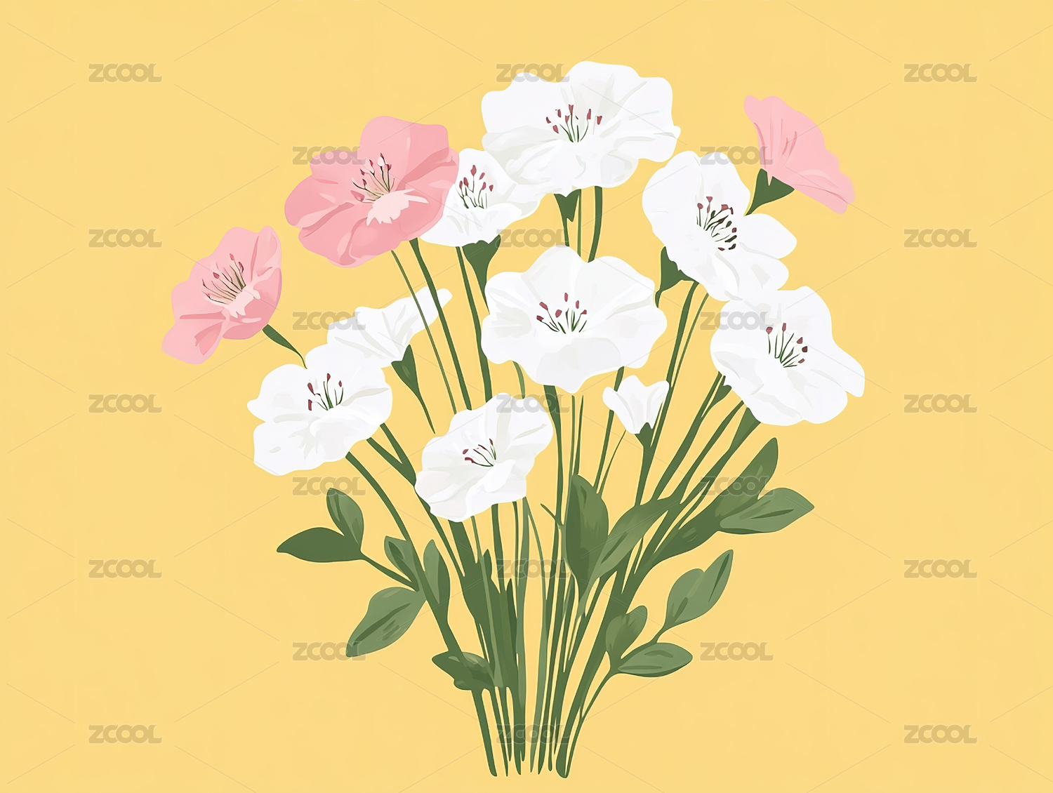 花朵,绿叶,插画,矢量,粉色,清新,图案,植物,花卉,背景元素