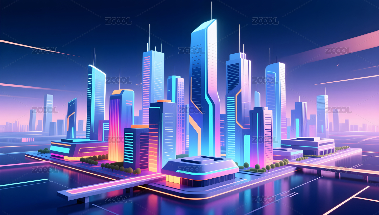 主视觉,商业,壁纸,城市,建筑,场景,高楼,立体,模型,都市