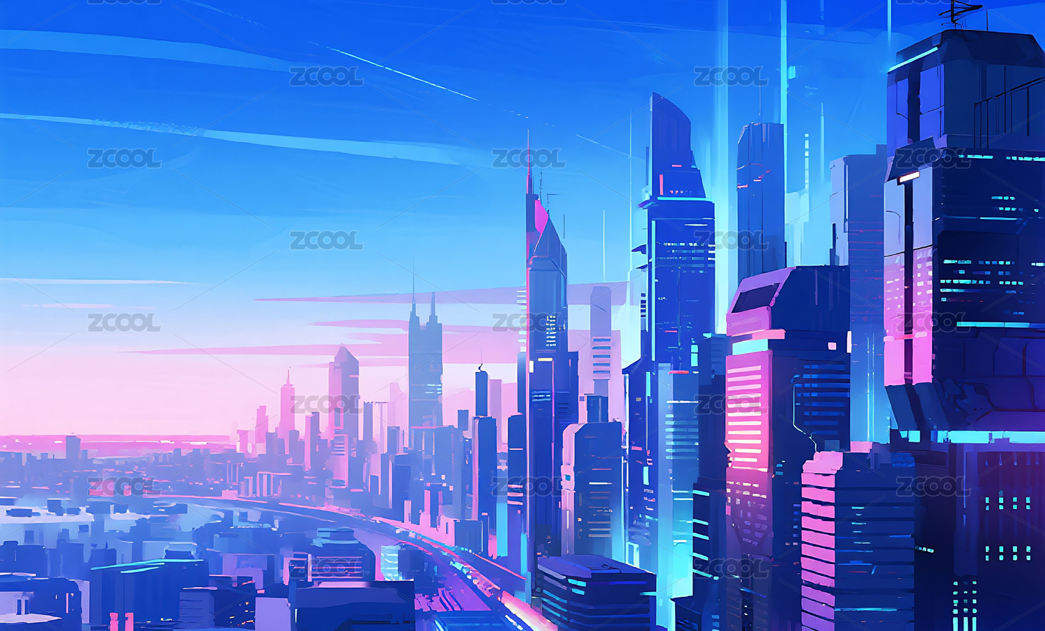 赛博朋克科幻城市建筑主视觉背景壁纸