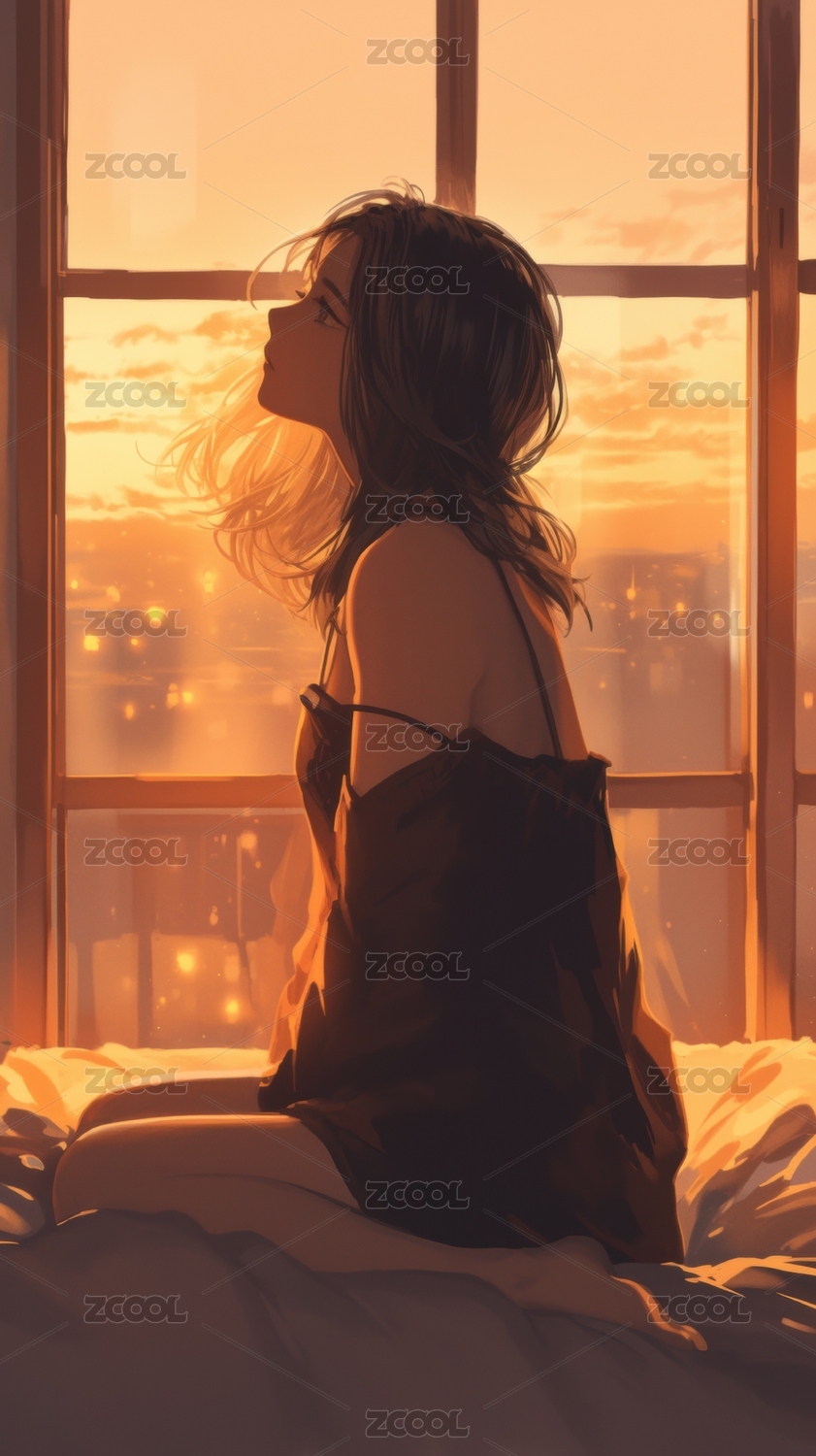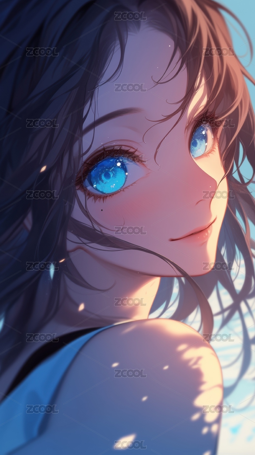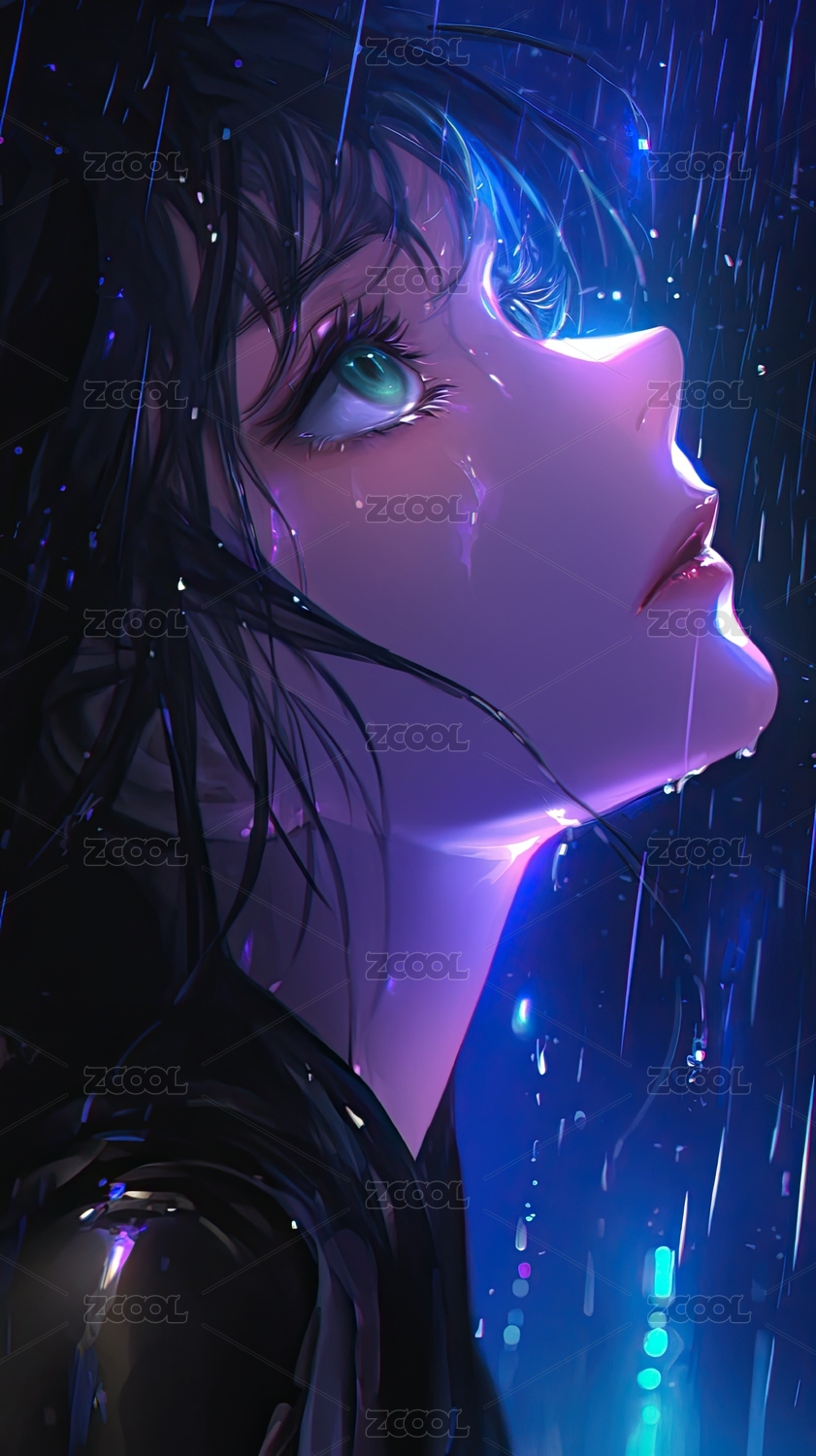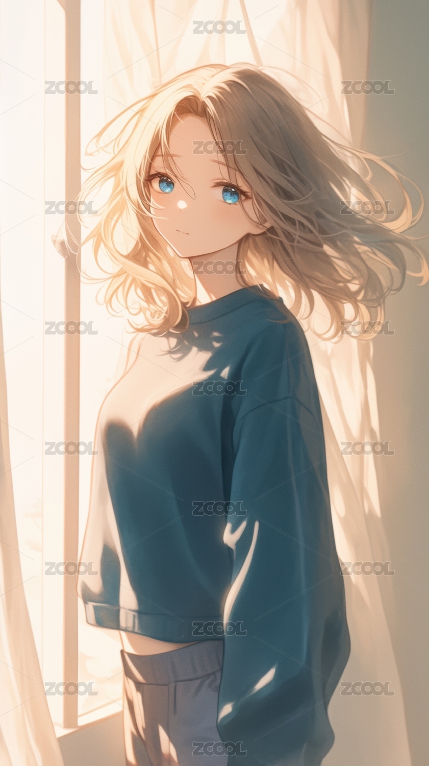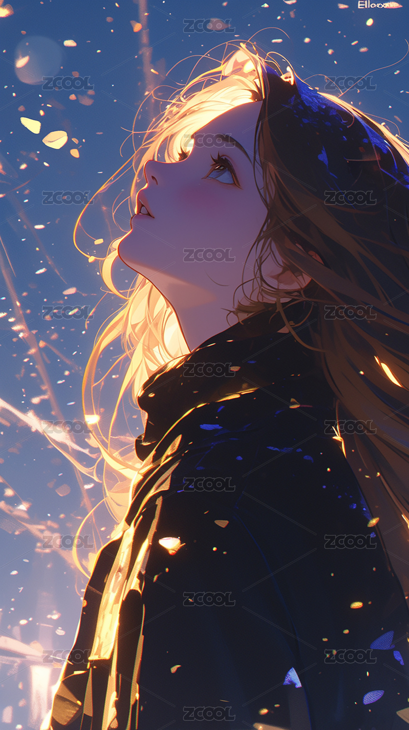 蓝色,背景,夜晚,艺术,插画,光影,细节,情感,氛围,少女
