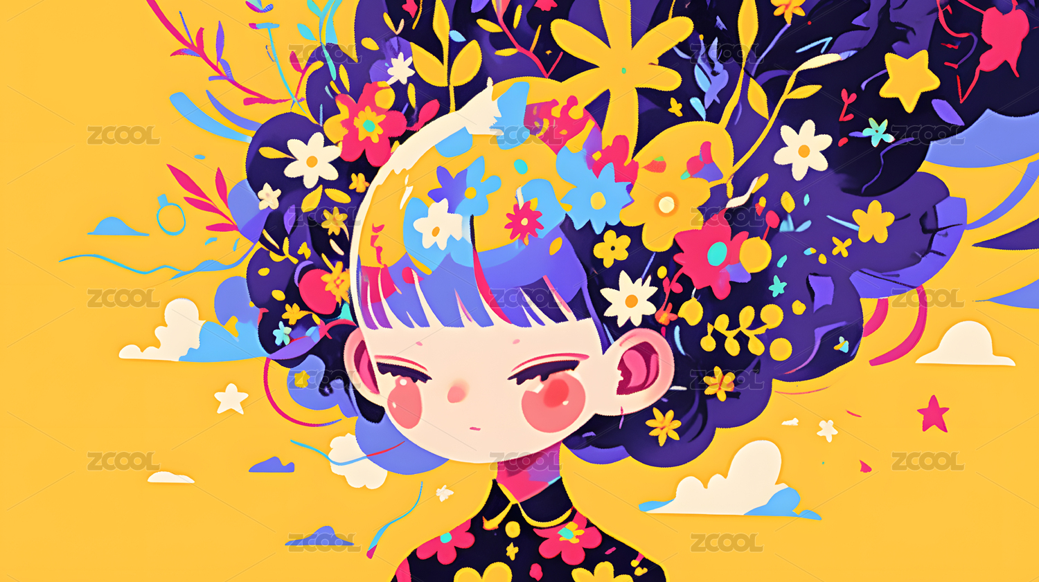 背景,艺术,现代,色彩,少女,动漫,风格,视觉,肖像,图案