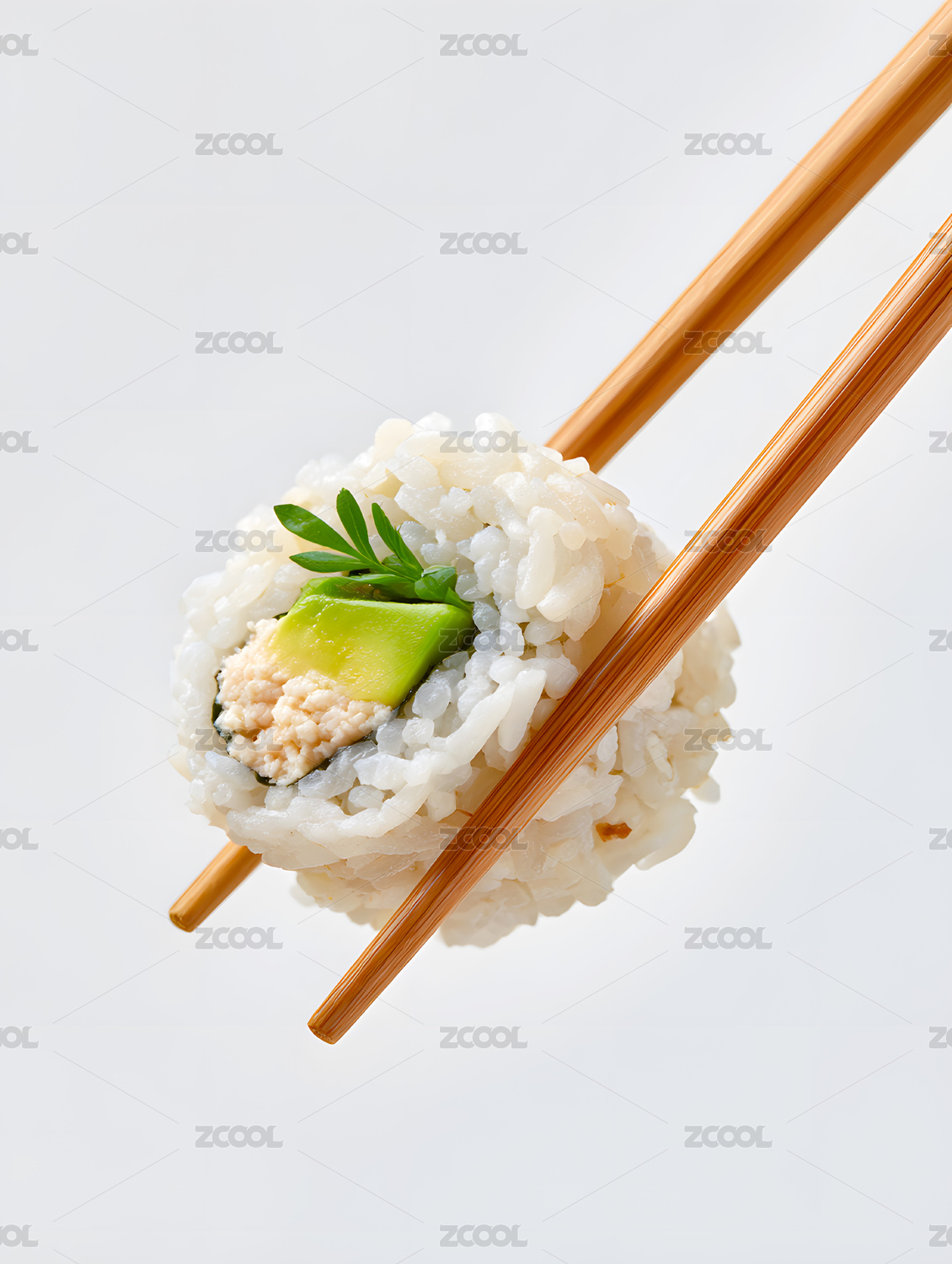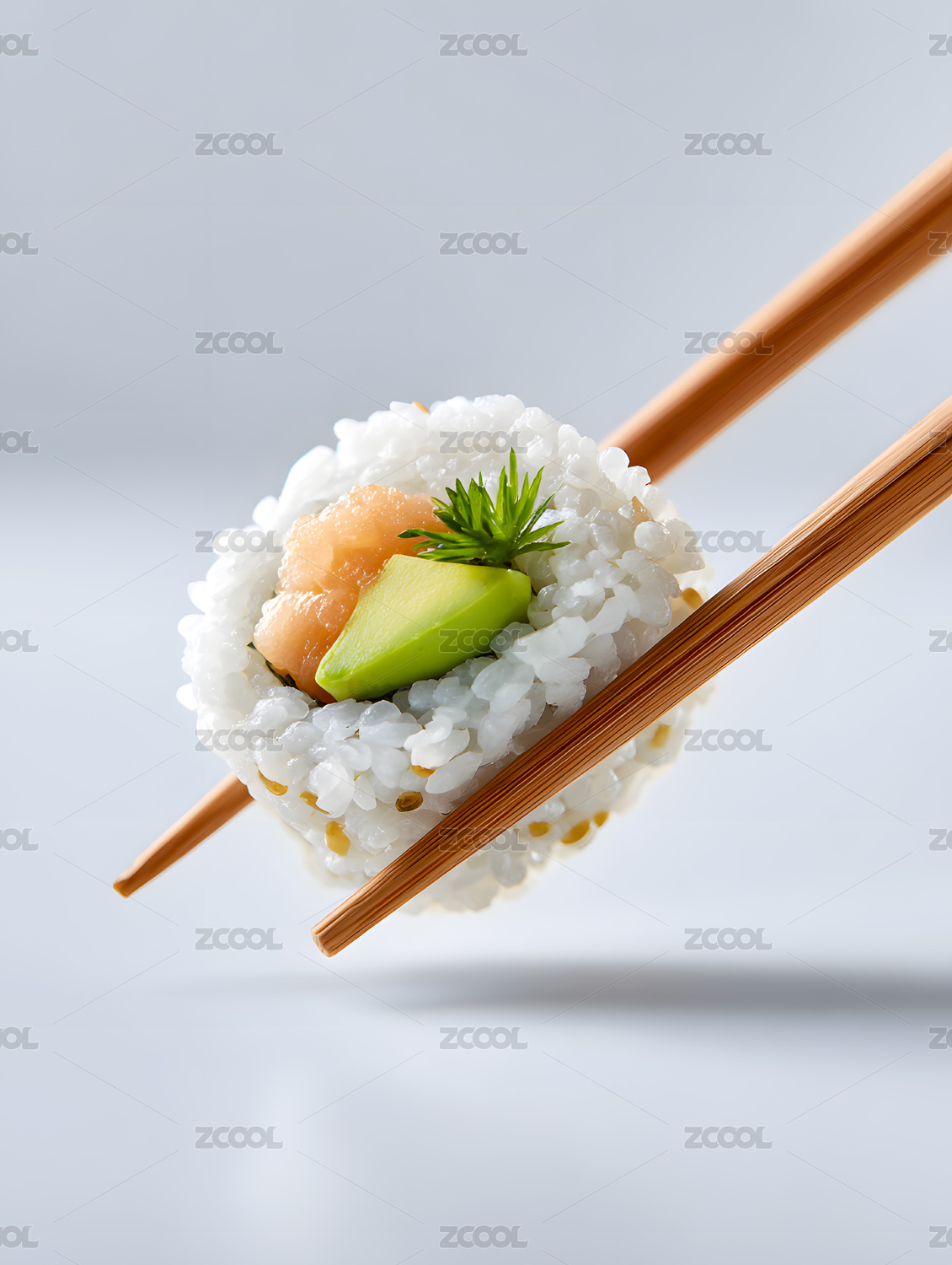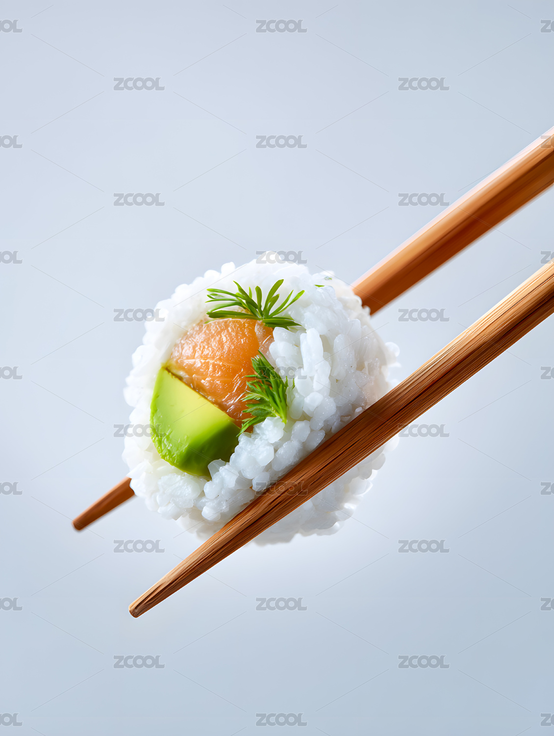 多口味寿司被筷子夹起艺术构图