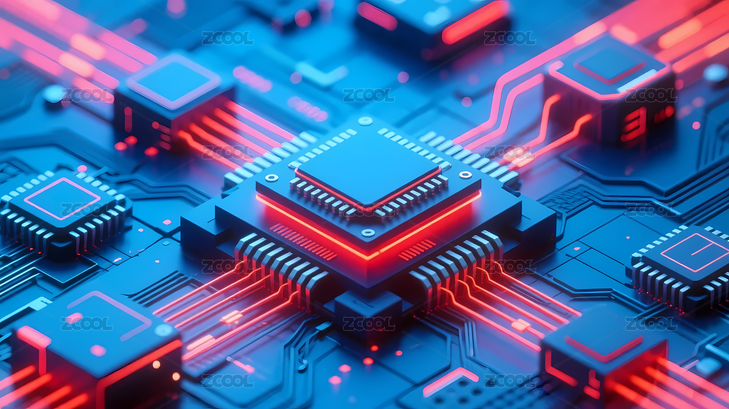 蓝色,科技,背景,深色,发光,电路,结构,芯片,核心,精密