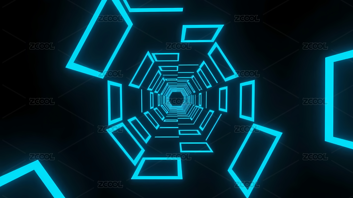 蓝色,科技,未来,背景,中心,霓虹灯,六边形,红色,光线,隧道