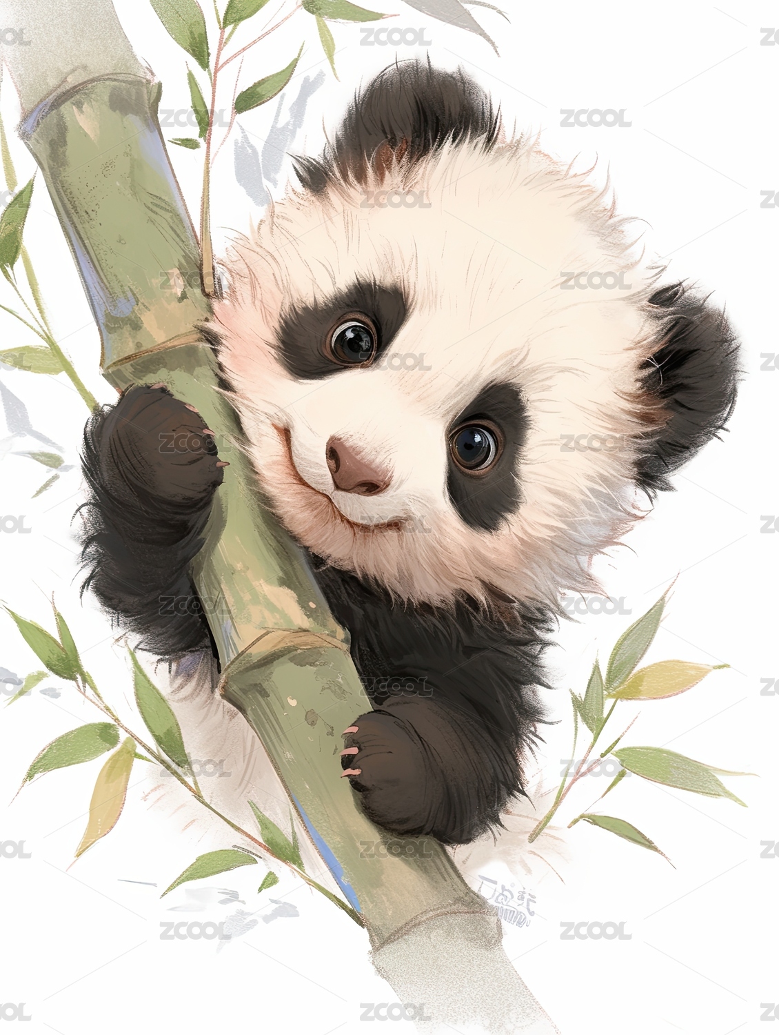 熊猫宝宝抱着竹子的可爱插画