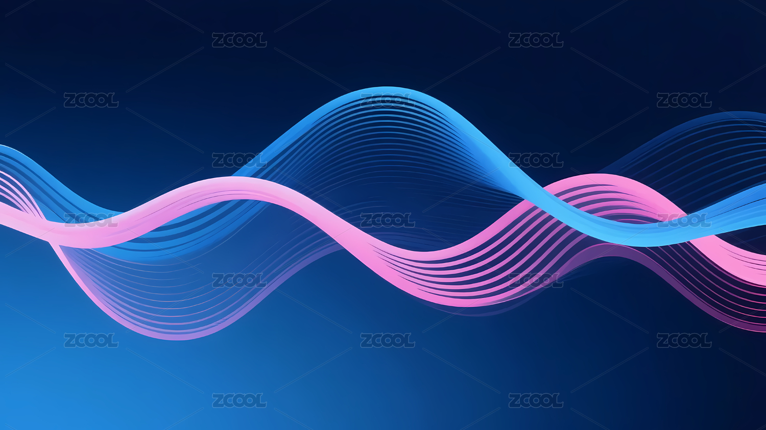 蓝粉交织波浪线条