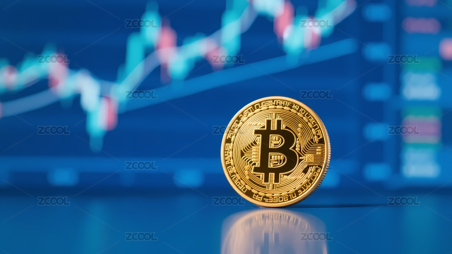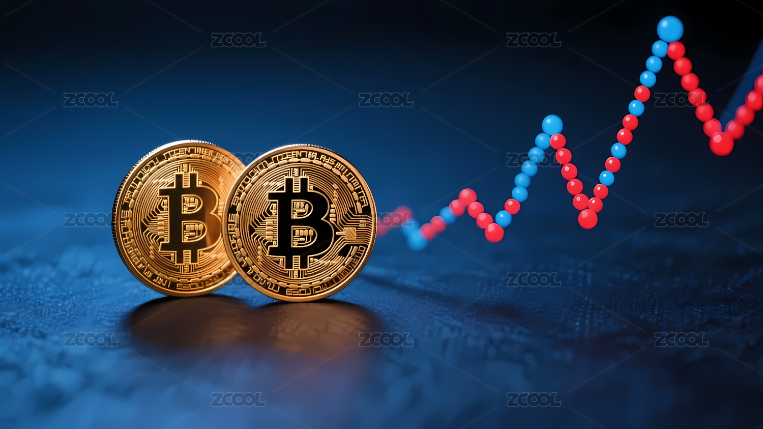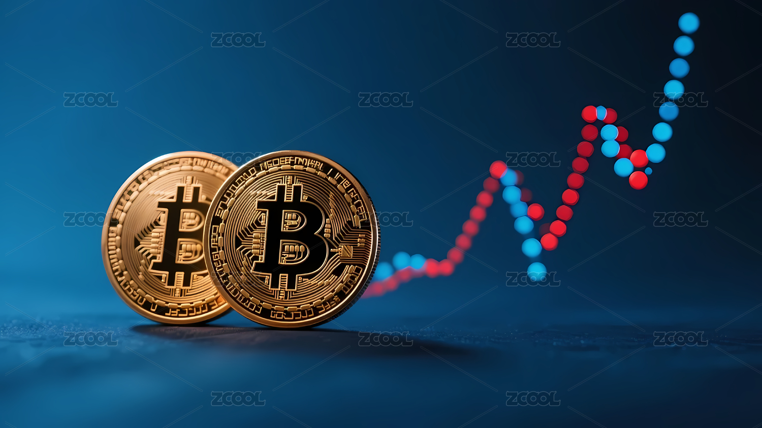 比特币硬币配红蓝图表
