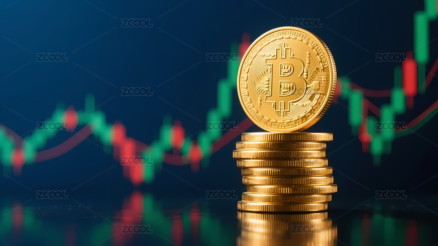 金色比特币深蓝图表背景