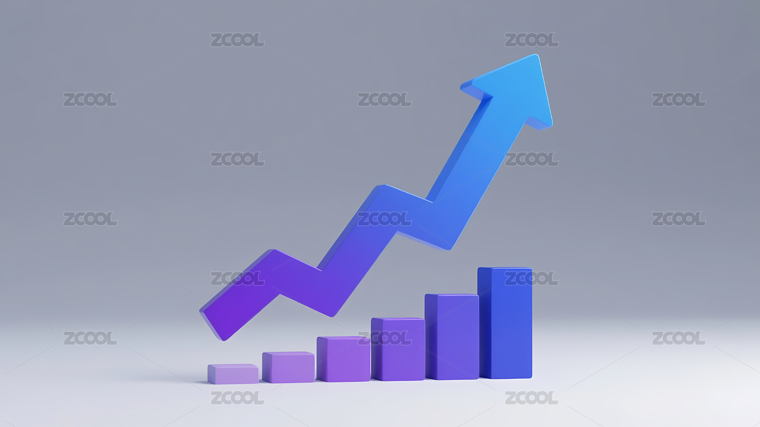 蓝色渐变玻璃质感金融柱状图增长箭头背景
