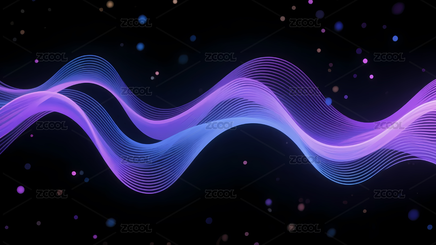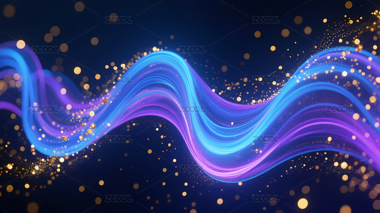 蓝紫波浪线与金色光点