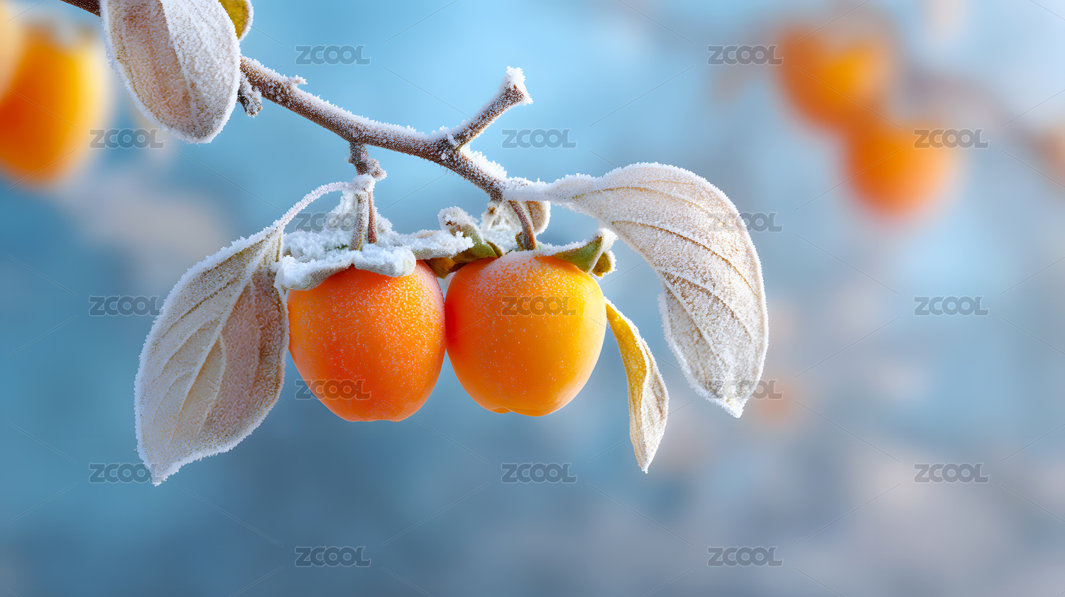 柿子,霜降,二十四节气,节气,季节,冬季,果实,雪,树,霜