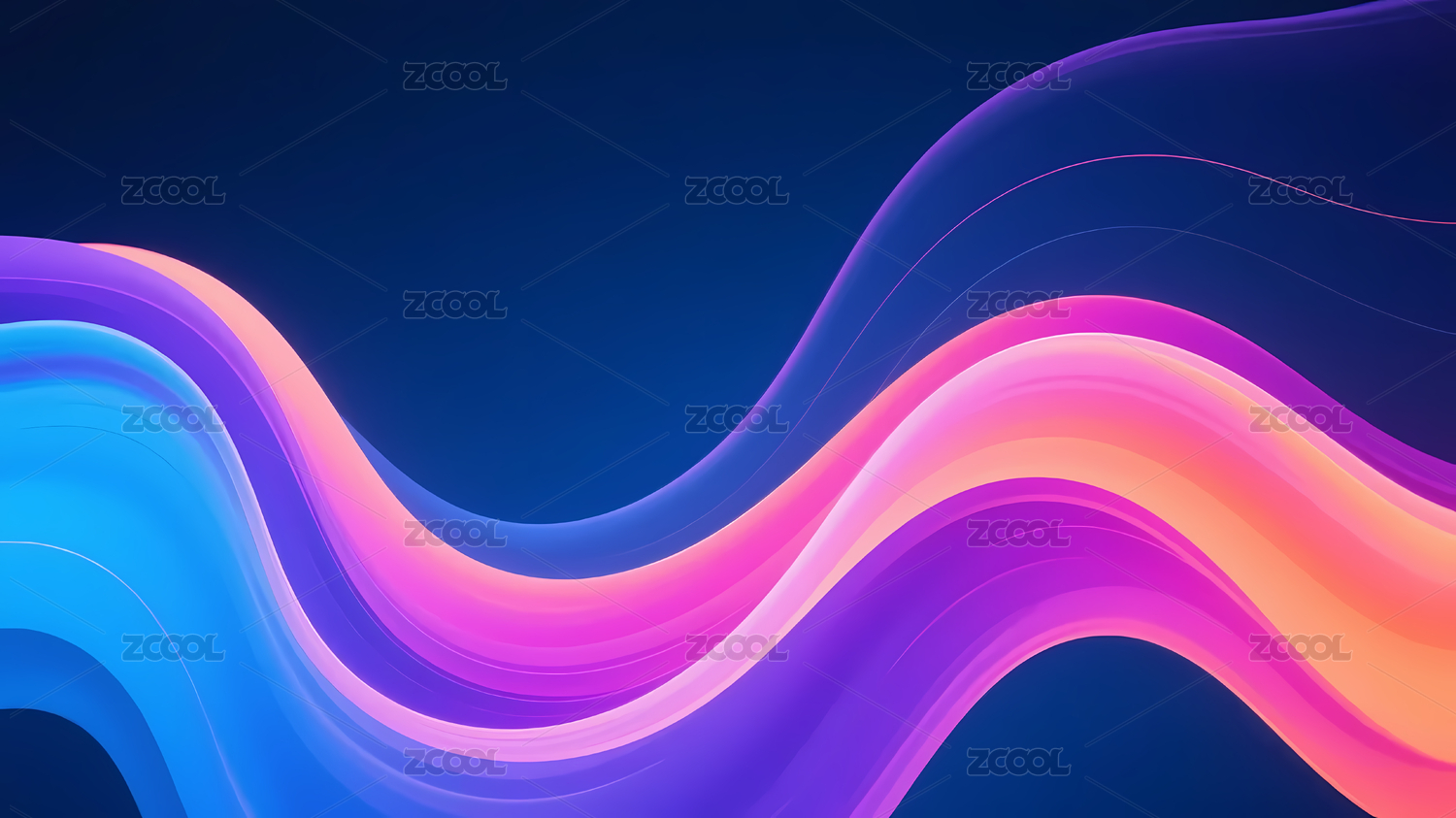 蓝粉橙渐变波浪线深蓝底